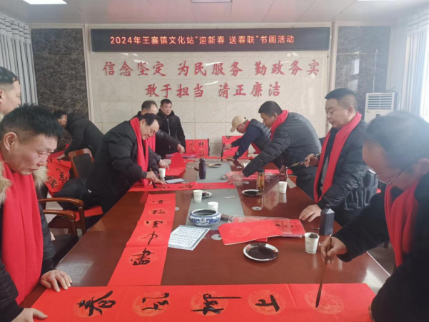 2月5日,王寨鎮(zhèn)文化站開展“迎新春,送春聯(lián)”書畫活動,活動中,書法志愿者們一起鋪上紅紙、研上濃墨,一個個“?!弊趾鸵环錆M祝福的迎新詞句躍然紙上,書寫結(jié)束后,志愿者們走上街頭,將一個個“福”字送到村民手中,讓村民們感受到了濃濃的年味。同時志愿者們把寫好的春聯(lián)送到了困難群眾家中,大紅的春聯(lián)和福字,飽含了紅紅火火的美好祝愿,代表了對她們的關(guān)愛,呈現(xiàn)出喜慶的節(jié)日氛圍。