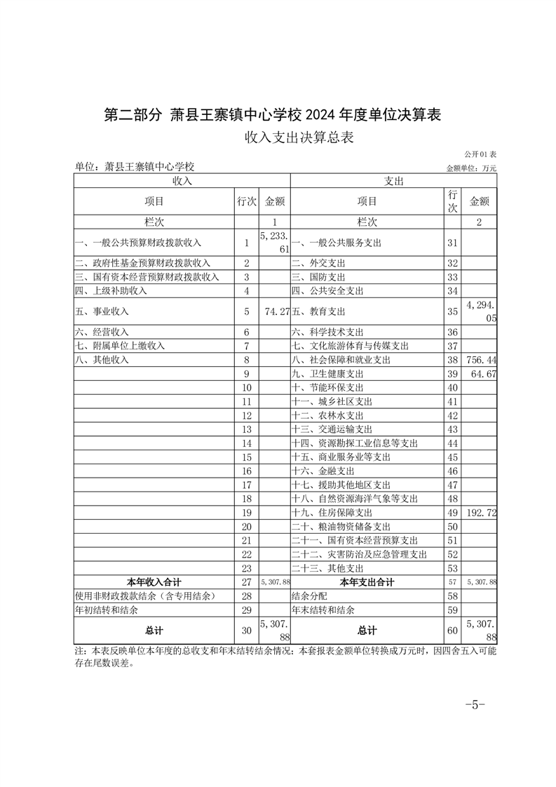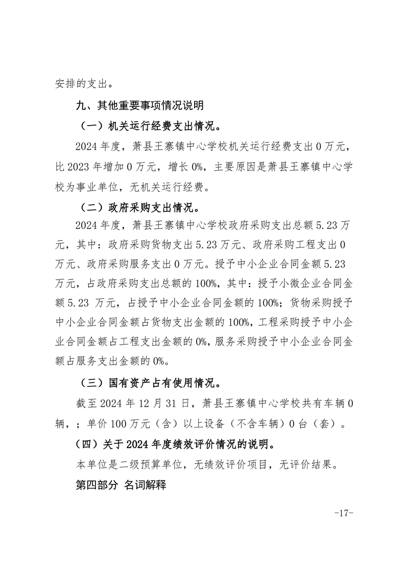 【年度決算信息】蕭縣王寨鎮(zhèn)中心學(xué)校2024年度單位決算