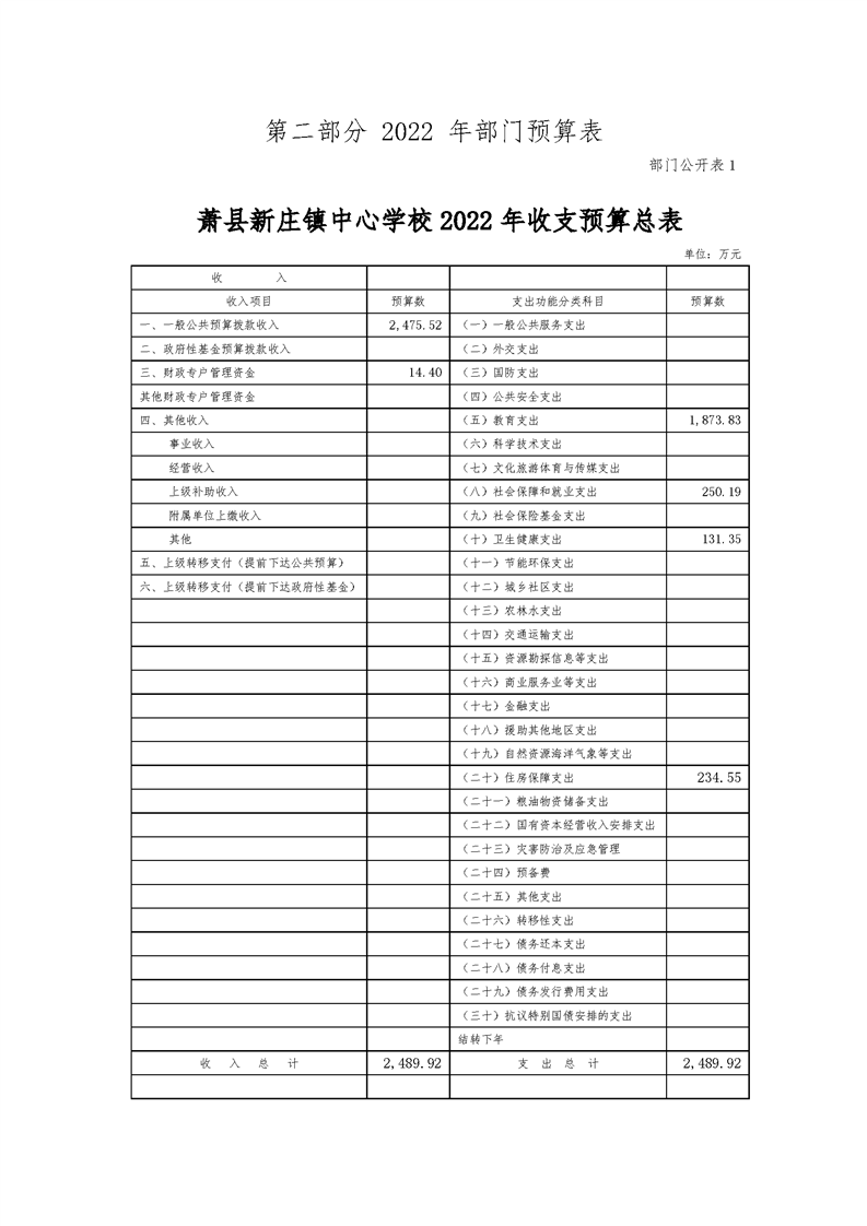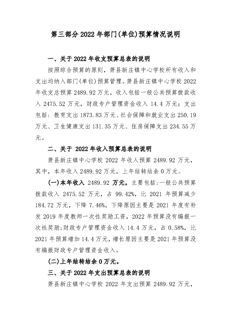 【年度預(yù)決算信息】蕭縣新莊鎮(zhèn)中心學(xué)校2022年部門預(yù)算