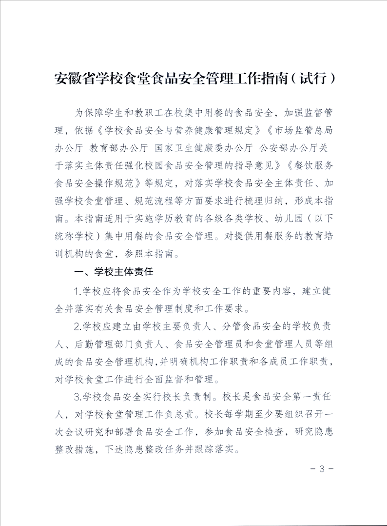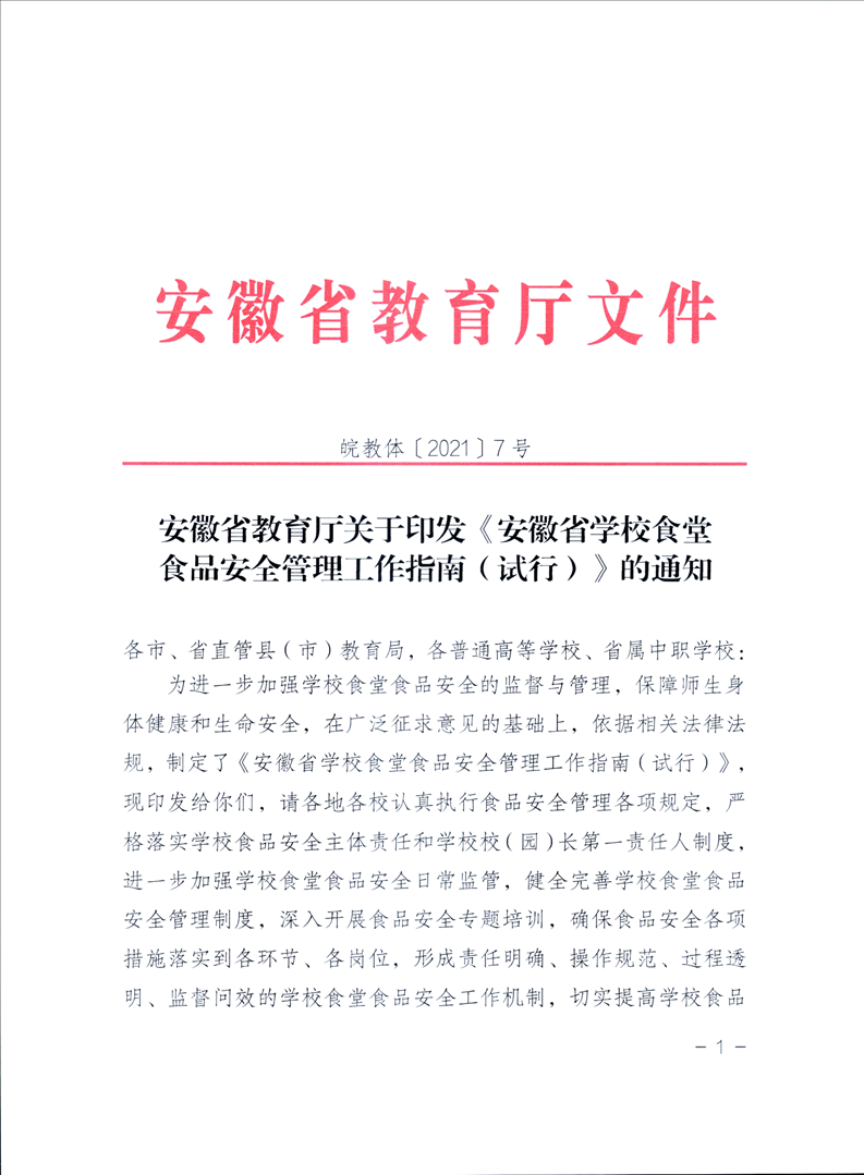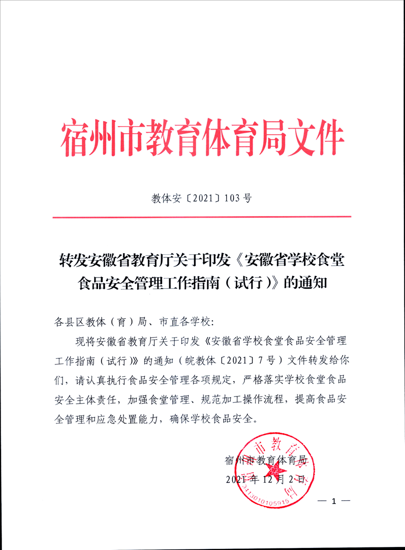 【政策文件】宿州市教育體育局轉(zhuǎn)發(fā)安徽省教育廳關(guān)于印發(fā)《安徽省學(xué)校食堂食品安全管理工作指南(試行)》的通知