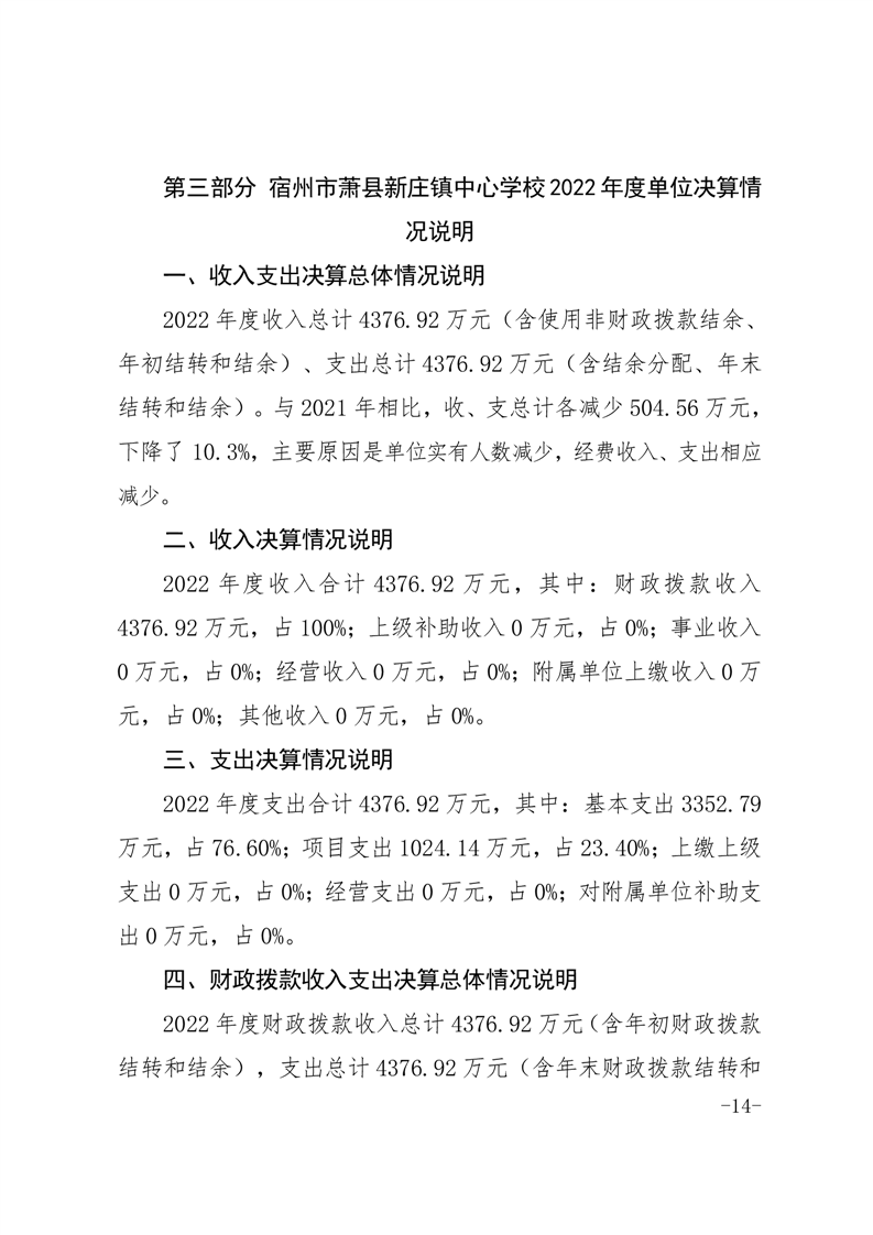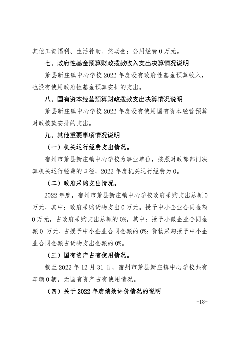 【年度決算信息】宿州市蕭縣新莊鎮(zhèn)中心學(xué)校2022年度單位決算