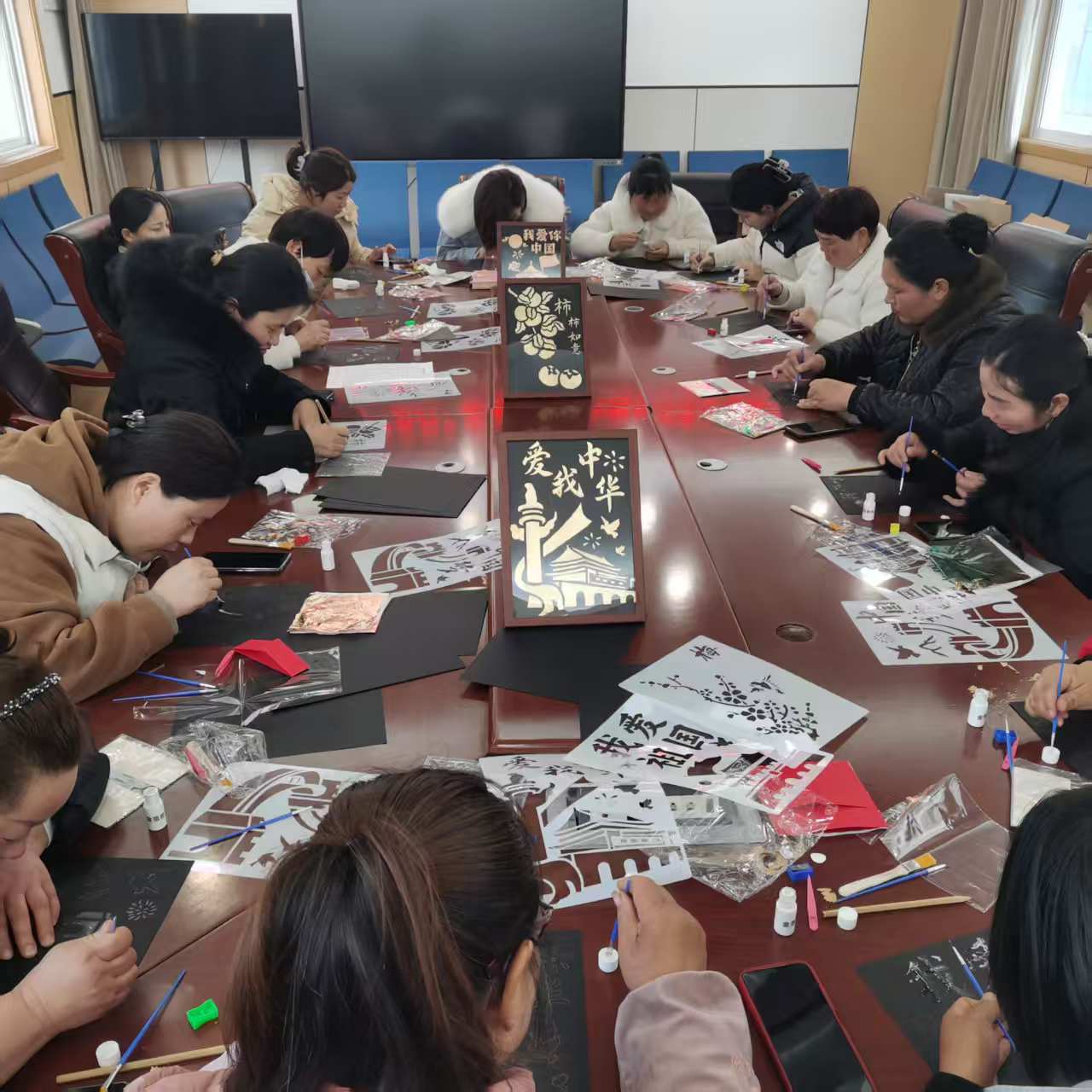 在胡惠惠的指導(dǎo)下,姐妹們紛紛拿起畫筆,開始體驗(yàn)金箔畫的制作過程。大家認(rèn)真勾勒線條,小心翼翼地粘貼金箔,用心感受著非遺文化的魅力?;顒蝇F(xiàn)場氣氛熱烈,歡聲笑語不斷,一幅幅精美的金箔畫作品在大家的巧手下逐漸呈現(xiàn)。