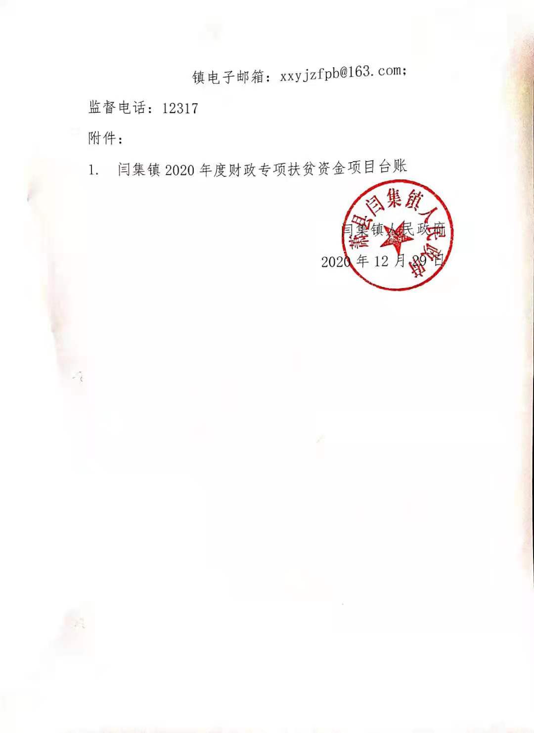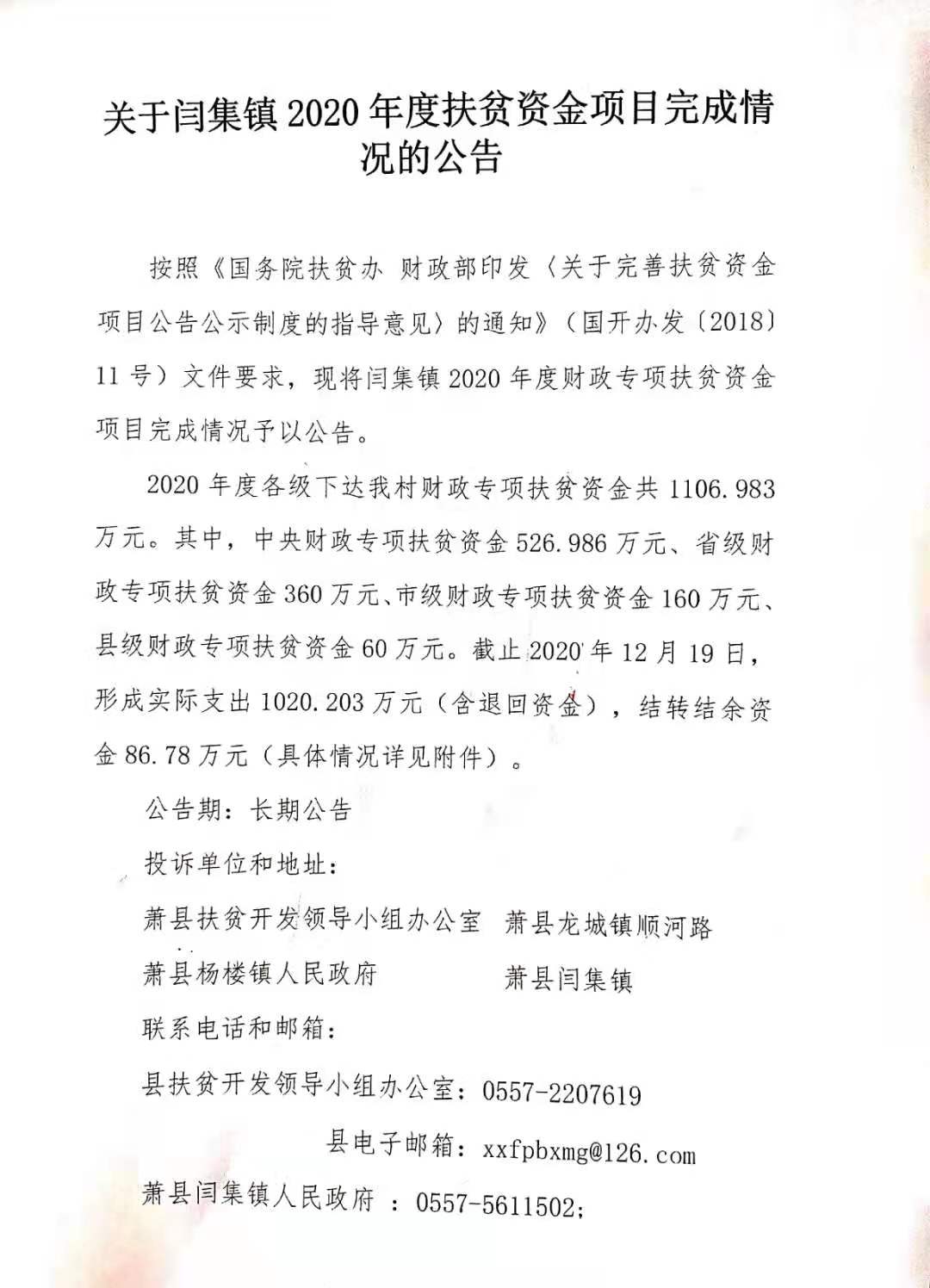 關(guān)于閆集鎮(zhèn)2020年度扶貧資金項(xiàng)目完成情況的公告