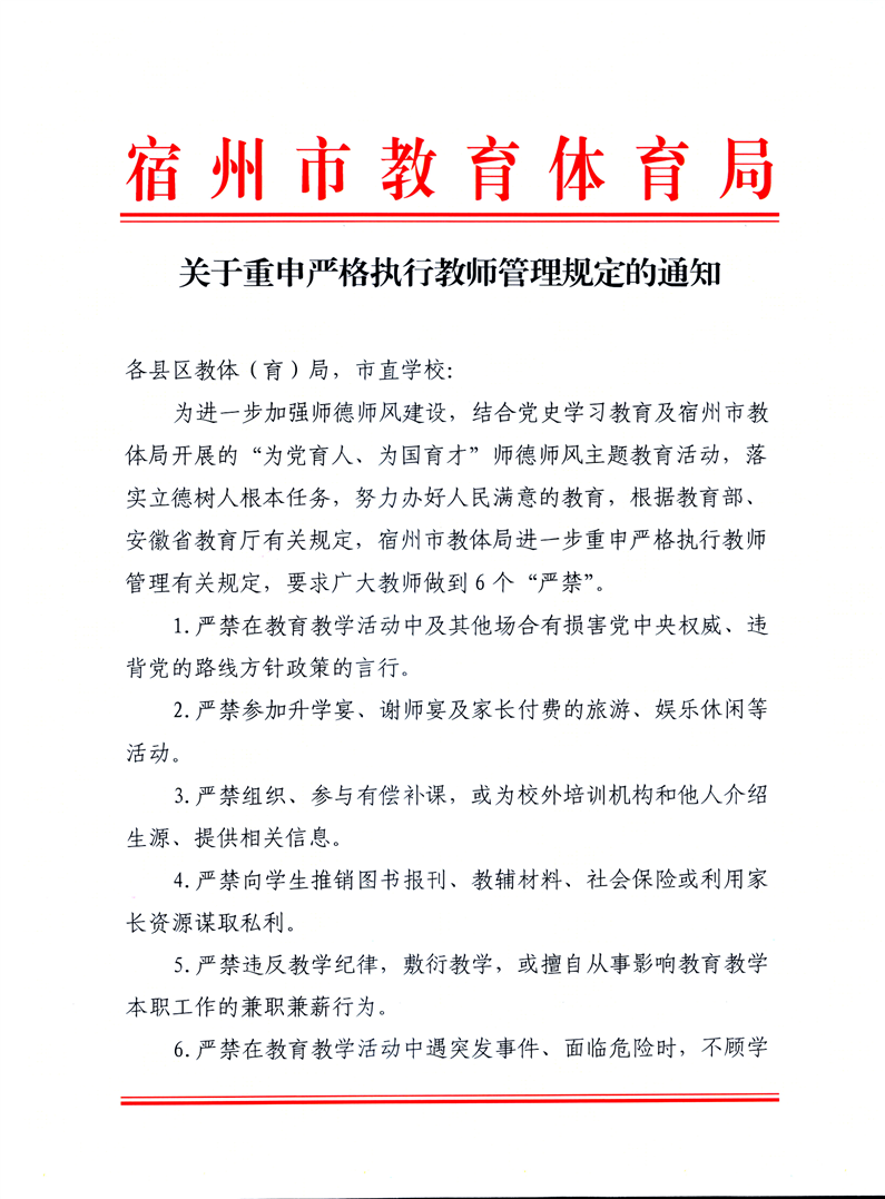 關(guān)于重申嚴(yán)格執(zhí)行教師管理規(guī)定的通知