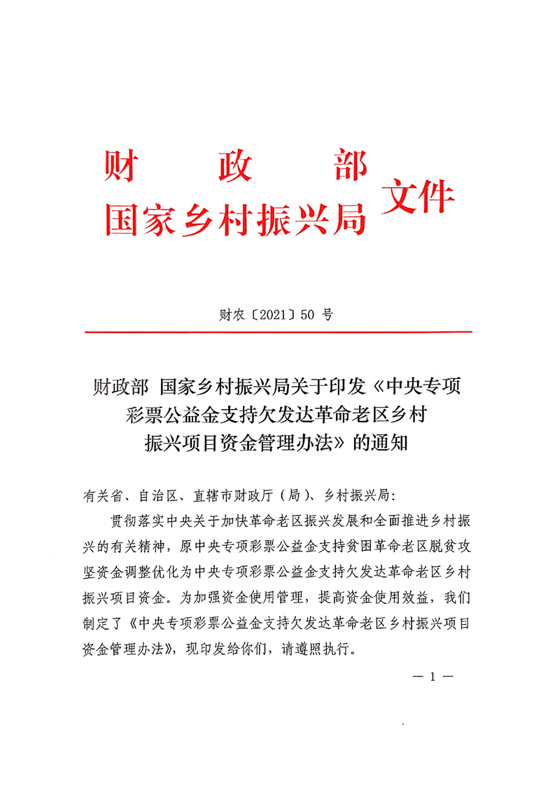 中央專項彩票公益金支持欠發(fā)達革命老區(qū)鄉(xiāng)村振興項目資金管理辦法