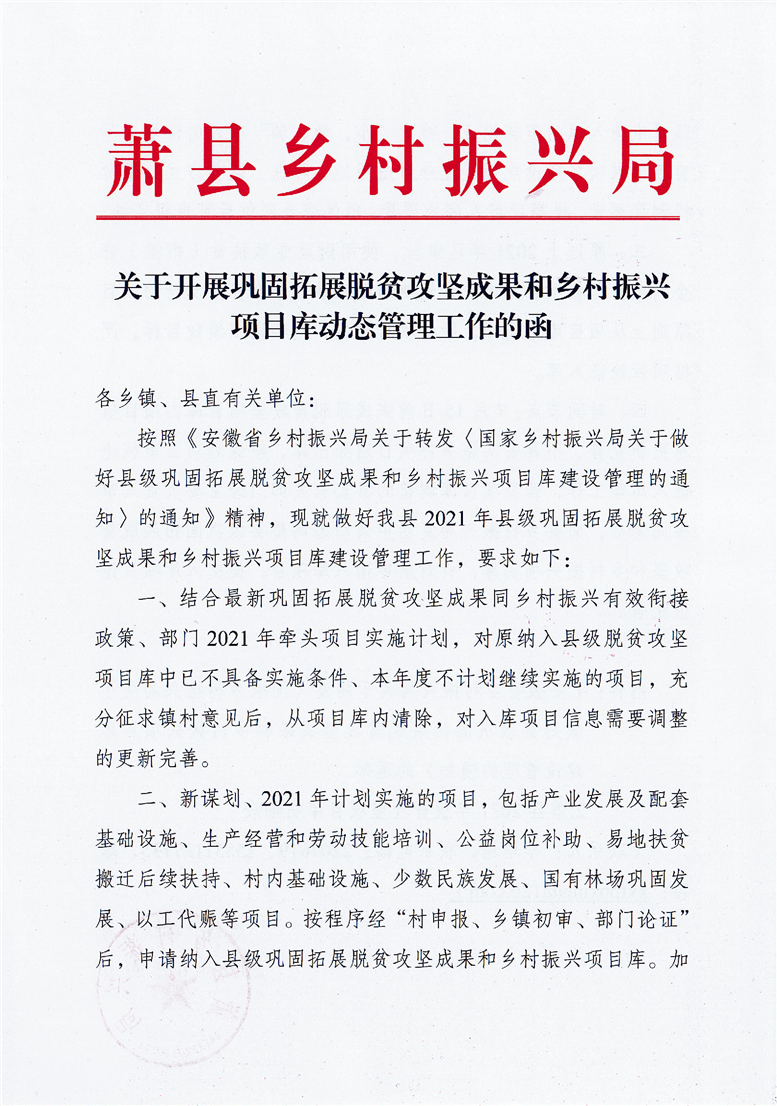 關于開展鞏固脫貧攻堅成果和鄉(xiāng)村振興項目庫動態(tài)管理工作的函