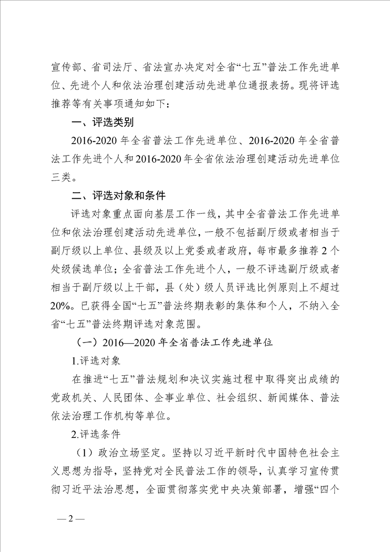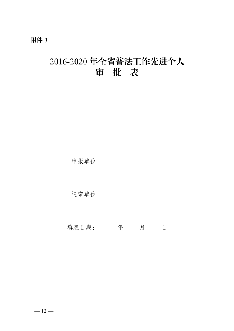 關(guān)于做好通報(bào)表揚(yáng)2016-2020年全省普法工作先進(jìn)單位、先進(jìn)個(gè)人、和依法治理創(chuàng)建活動先進(jìn)單位相關(guān)工作的通知(內(nèi)含空白申報(bào)表)