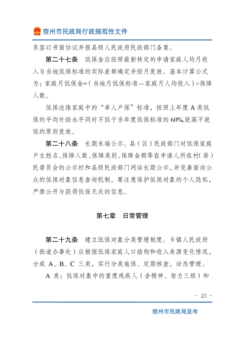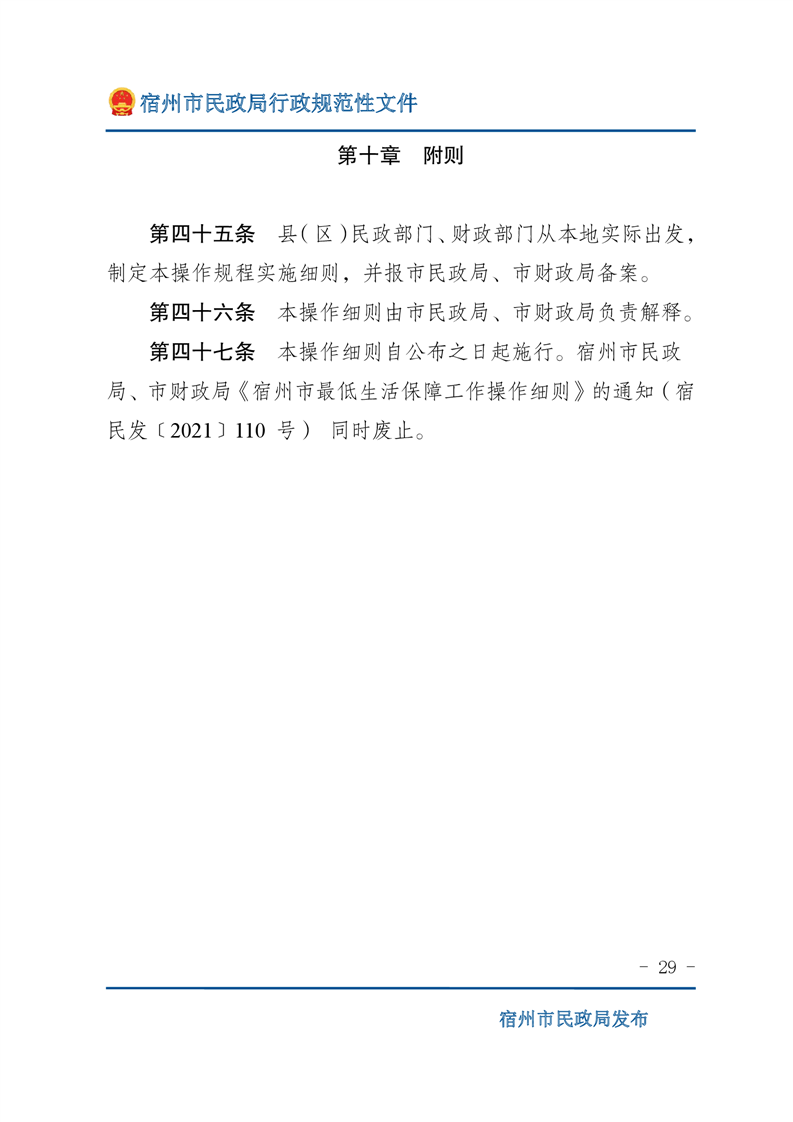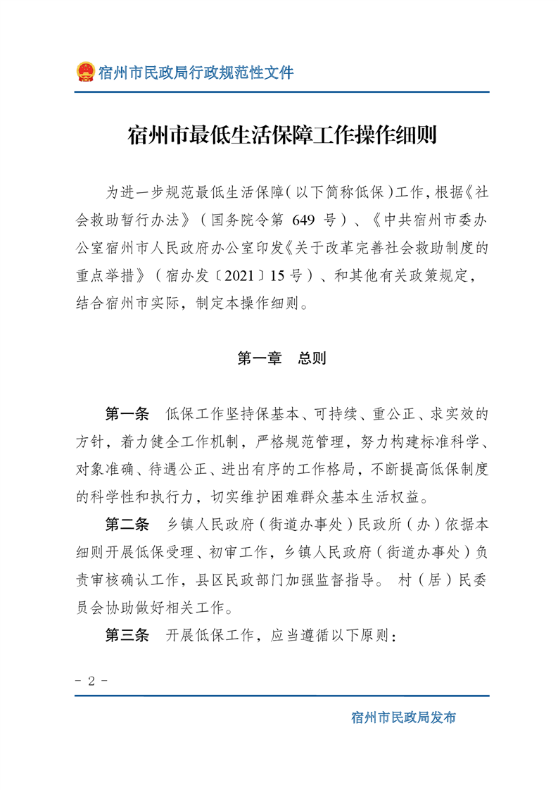 關(guān)于印發(fā)《宿州市最低生活保障工作操作細(xì)則》的通知(宿民發(fā)﹝2023﹞70號(hào))