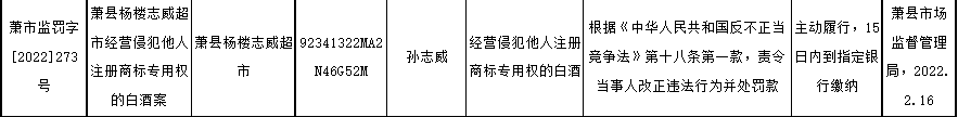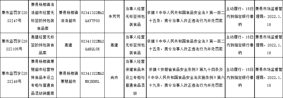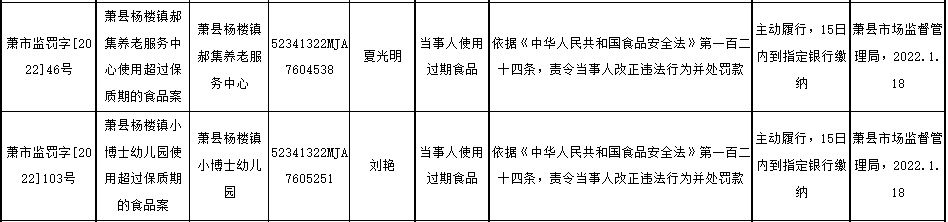楊樓鎮(zhèn)2022年第一季度食品藥品領(lǐng)域行政處罰信息公示