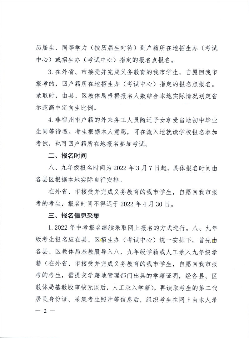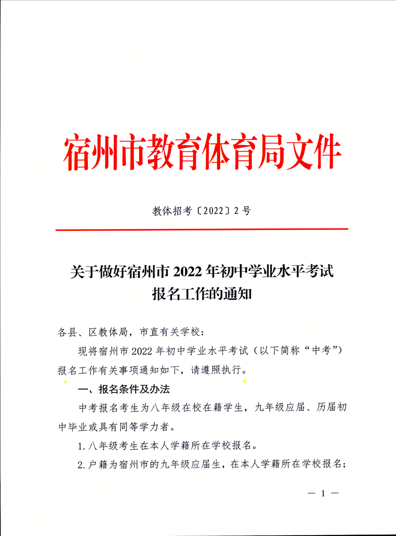 關(guān)于做好宿州市2022年初中學(xué)業(yè)水平考試報名工作的通知
