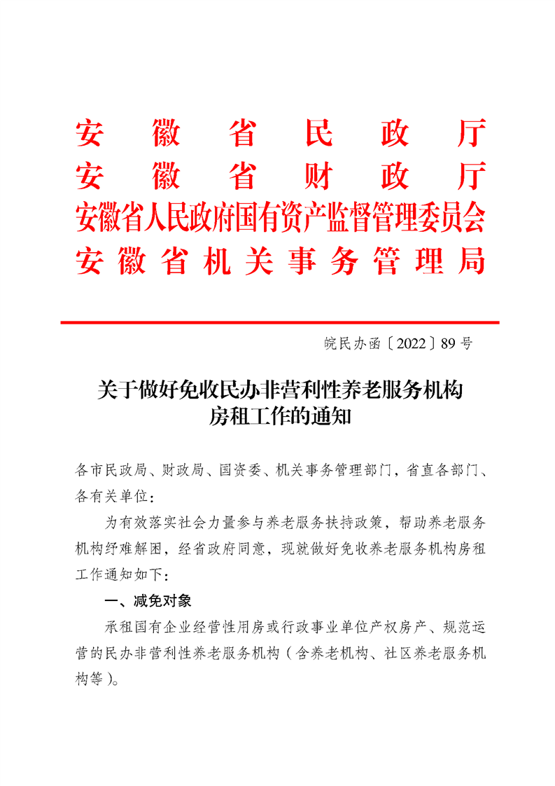《關于做好免收民辦非營利性養(yǎng)老服務機構房租工作的通知》