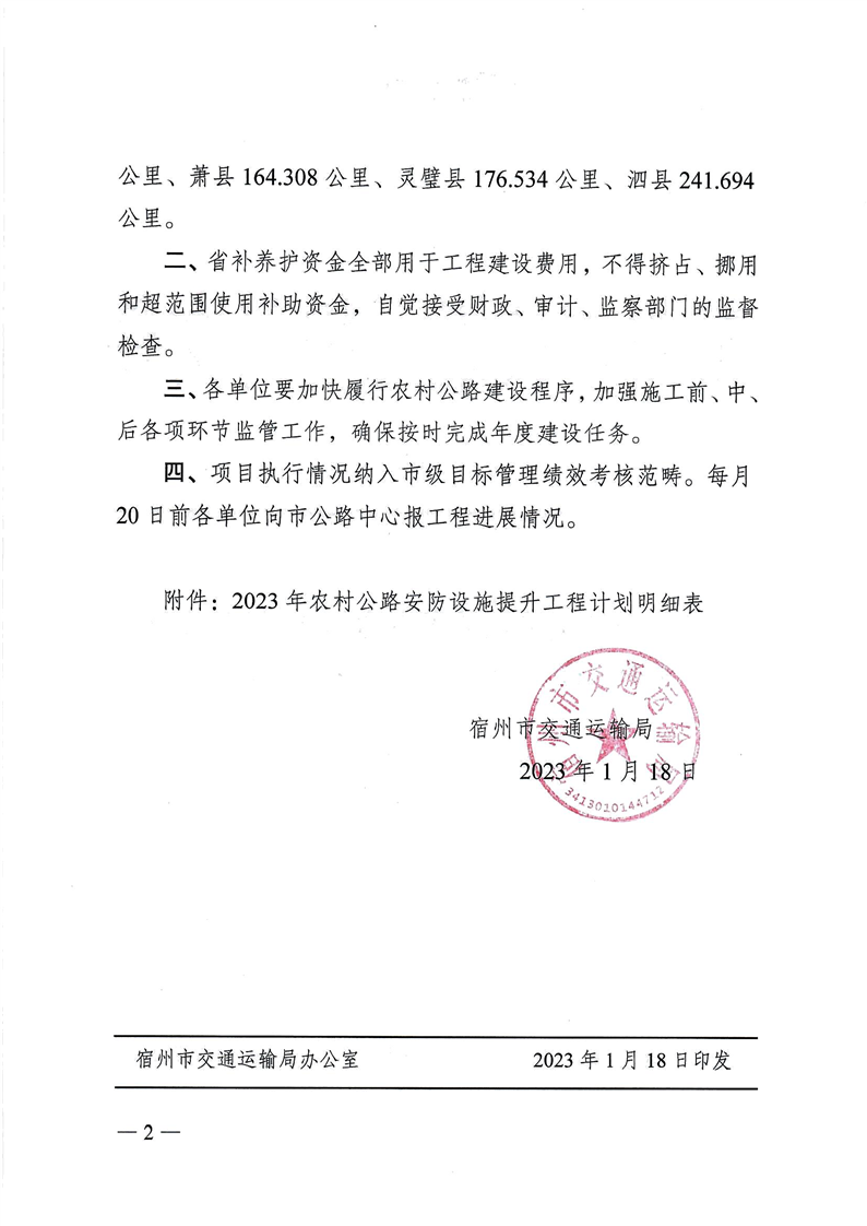 宿州市交通運輸局關于下達2023年農村公路養(yǎng)護工程(第二批)建設計劃的通知(楊樓鎮(zhèn))