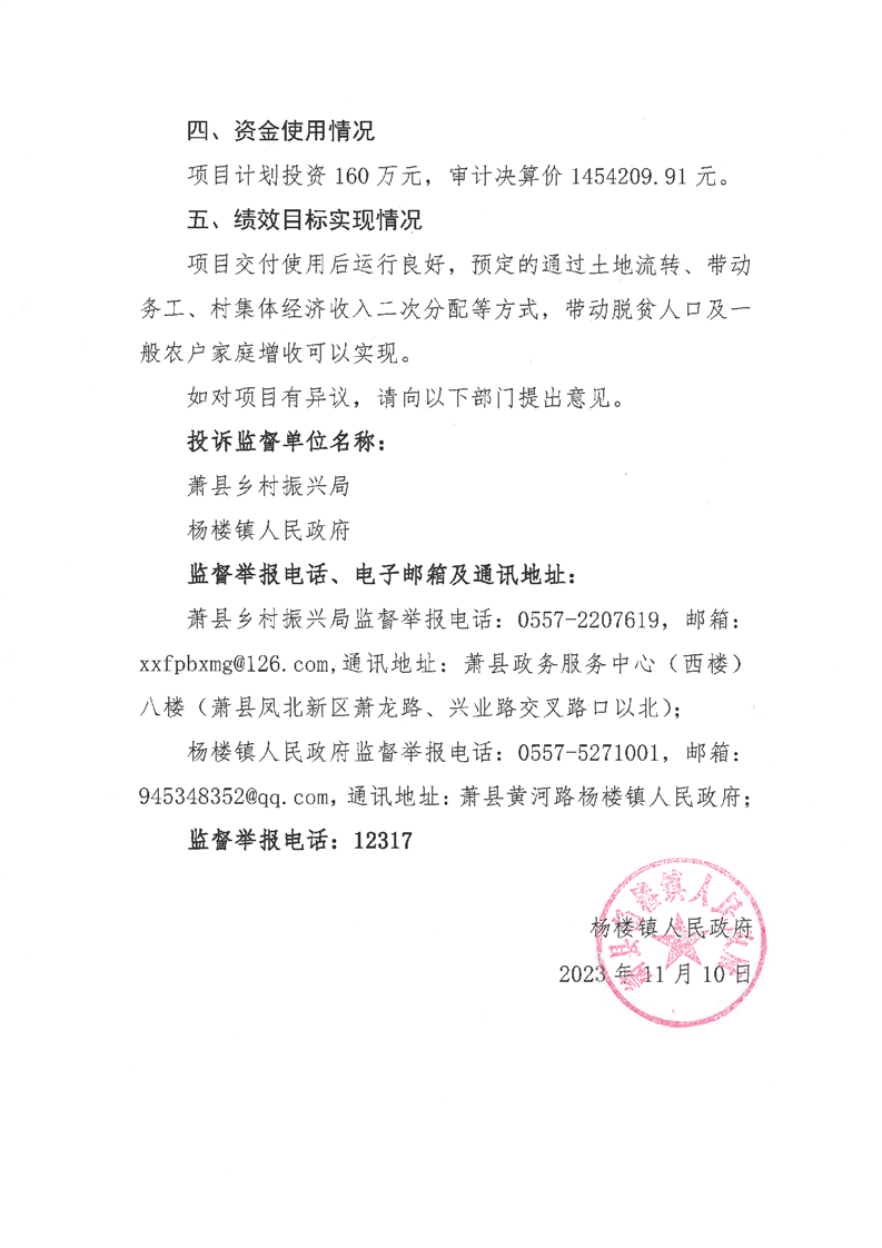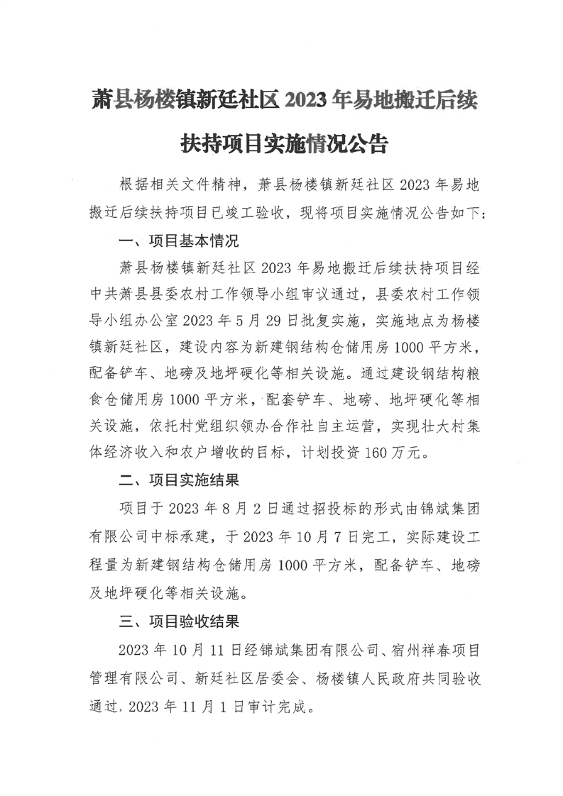 【計(jì)劃完成情況】蕭縣楊樓鎮(zhèn)新廷社區(qū)2023年易地搬遷后續(xù)扶持項(xiàng)目實(shí)施情況