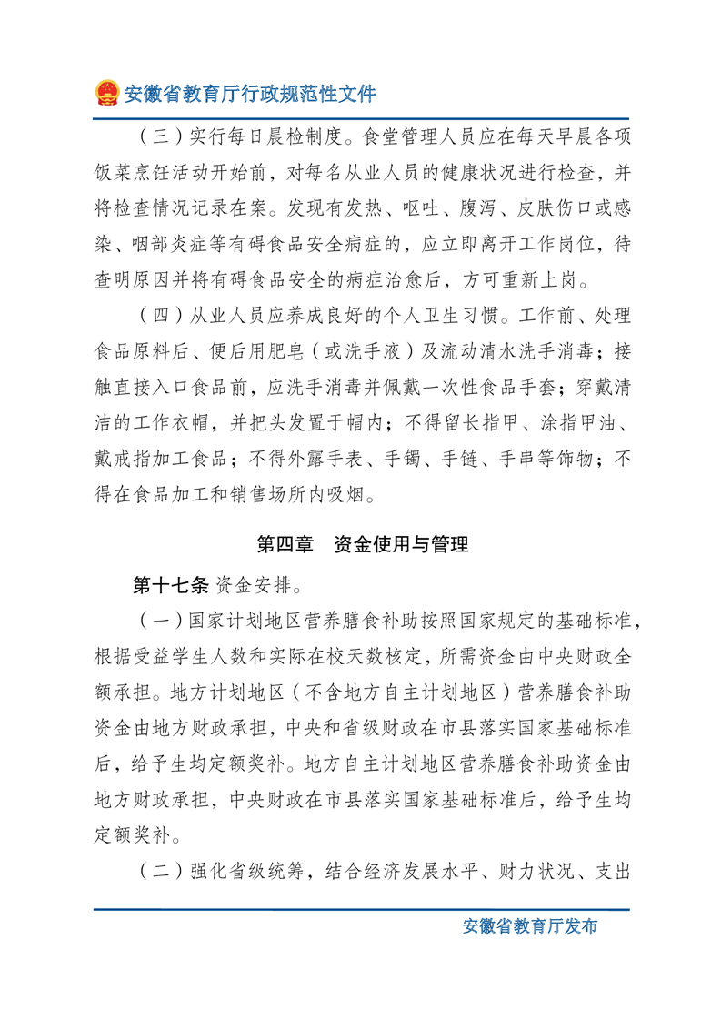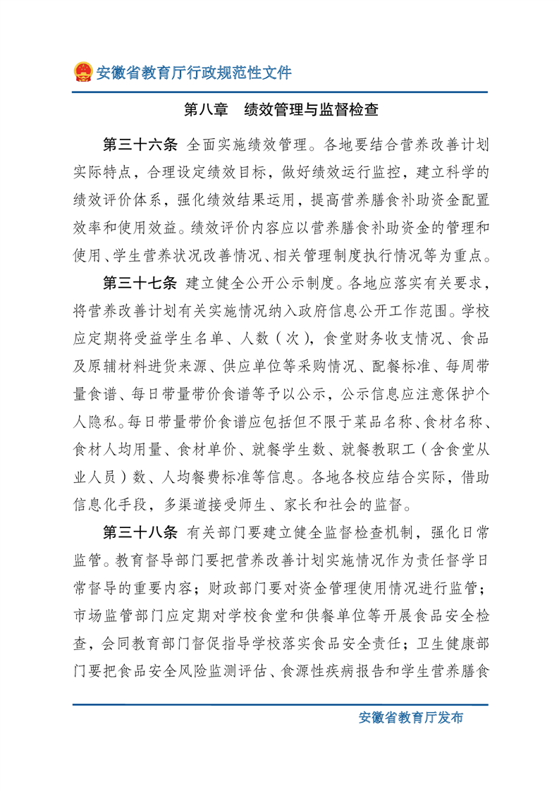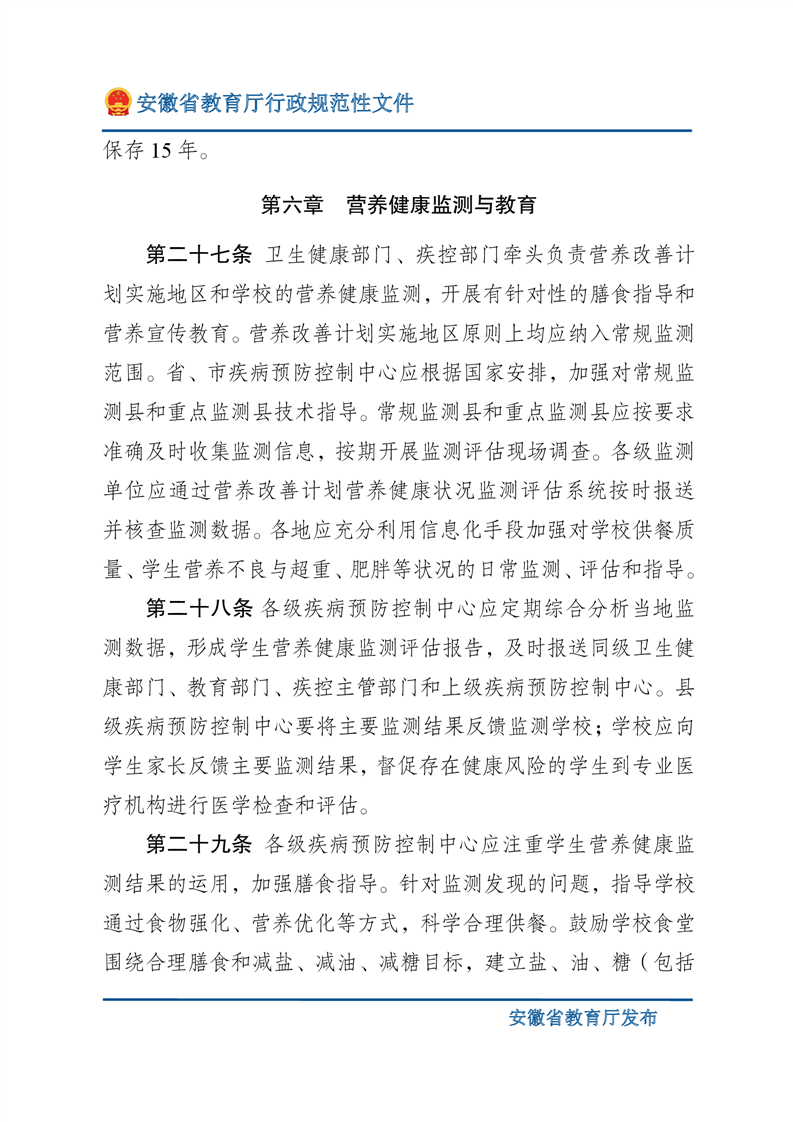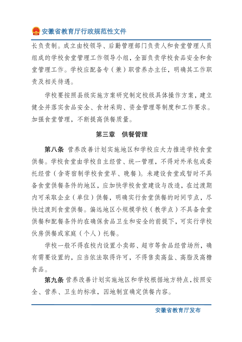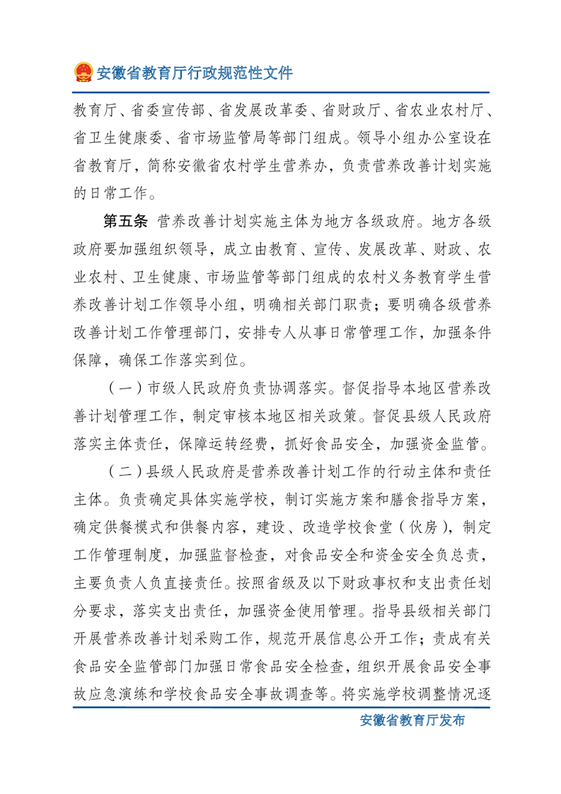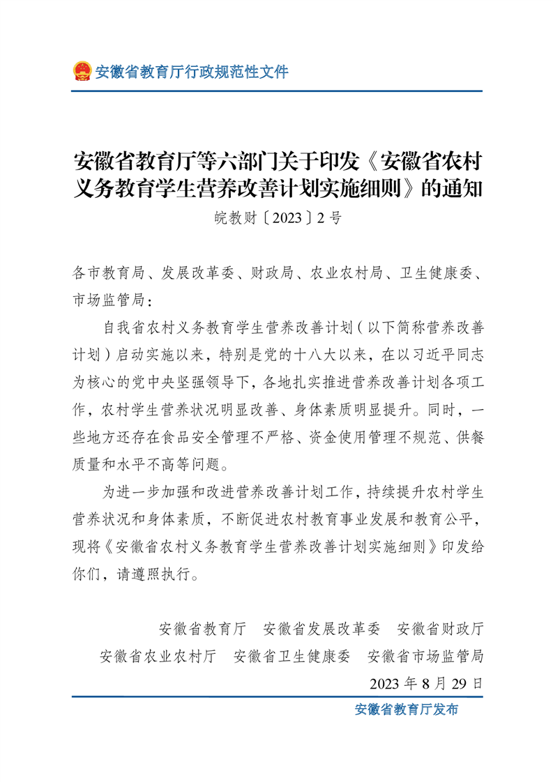 【政策文件】安徽省教育廳等六部門關于印發(fā)《安徽省農(nóng)村義務教育學生營養(yǎng)改善計劃實施細則》的通知
