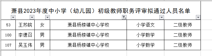【評審結(jié)果】蕭縣2023年度中小學(xué)(幼兒園)初級教師職務(wù)評審擬通過人員名單公示(楊樓鎮(zhèn))