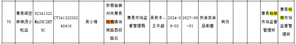 楊樓鎮(zhèn)2024年四季度新增小餐飲、攤販備案信息