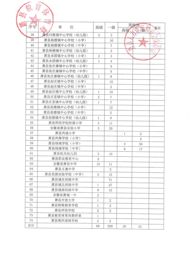關(guān)于2024年度蕭縣教育系列專業(yè)技術(shù)職務(wù)崗位使用情況的通知