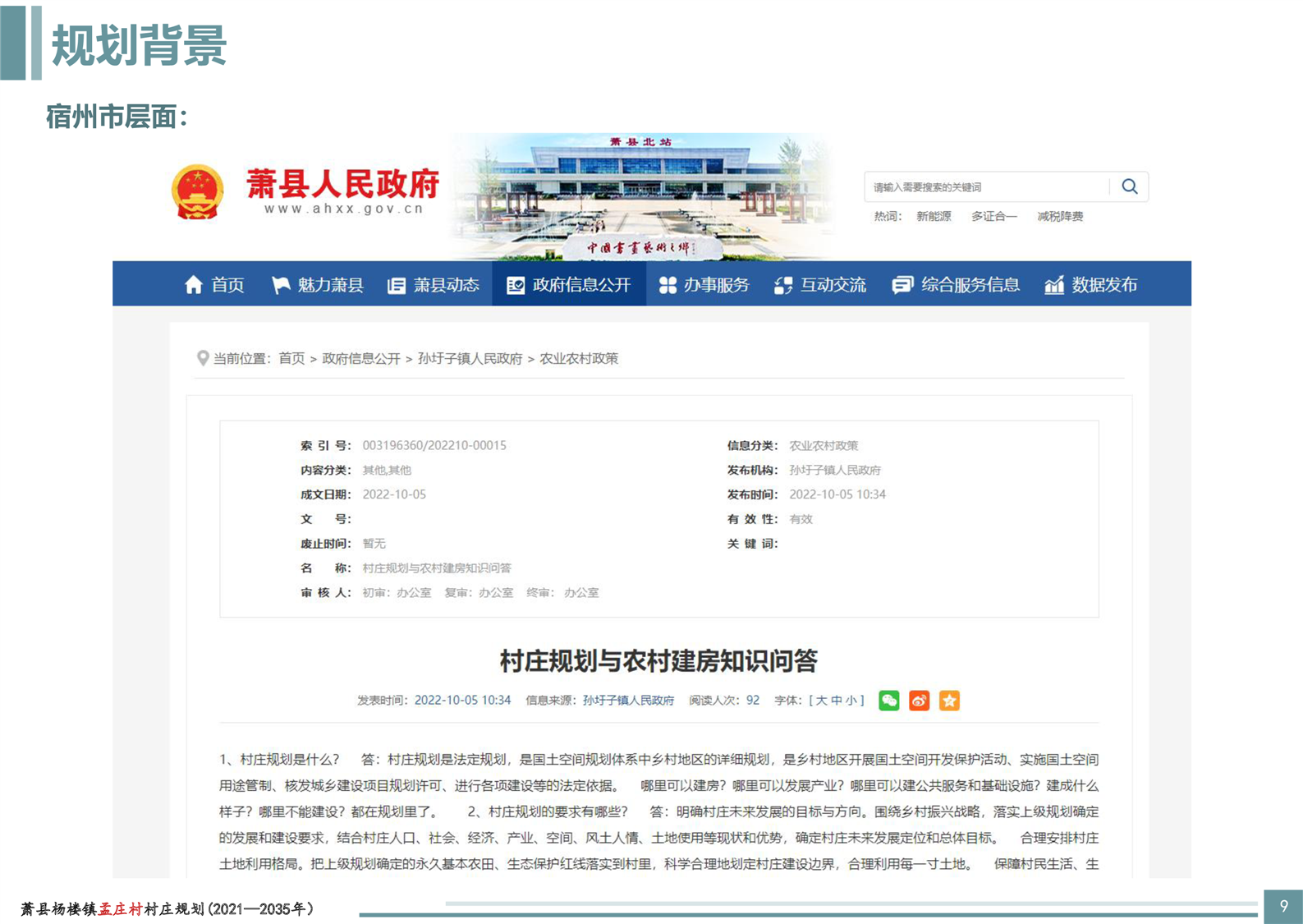 《蕭縣楊樓鎮(zhèn)孟莊村村莊規(guī)劃(2021-2035年)》方案批前公示