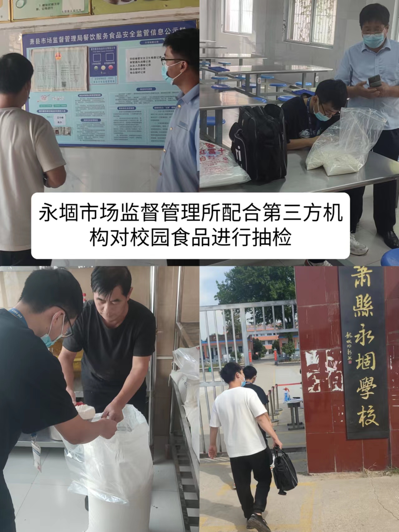 永堌鎮(zhèn)市場(chǎng)監(jiān)督管理所配合第三方機(jī)構(gòu)對(duì)校園食品進(jìn)行抽檢