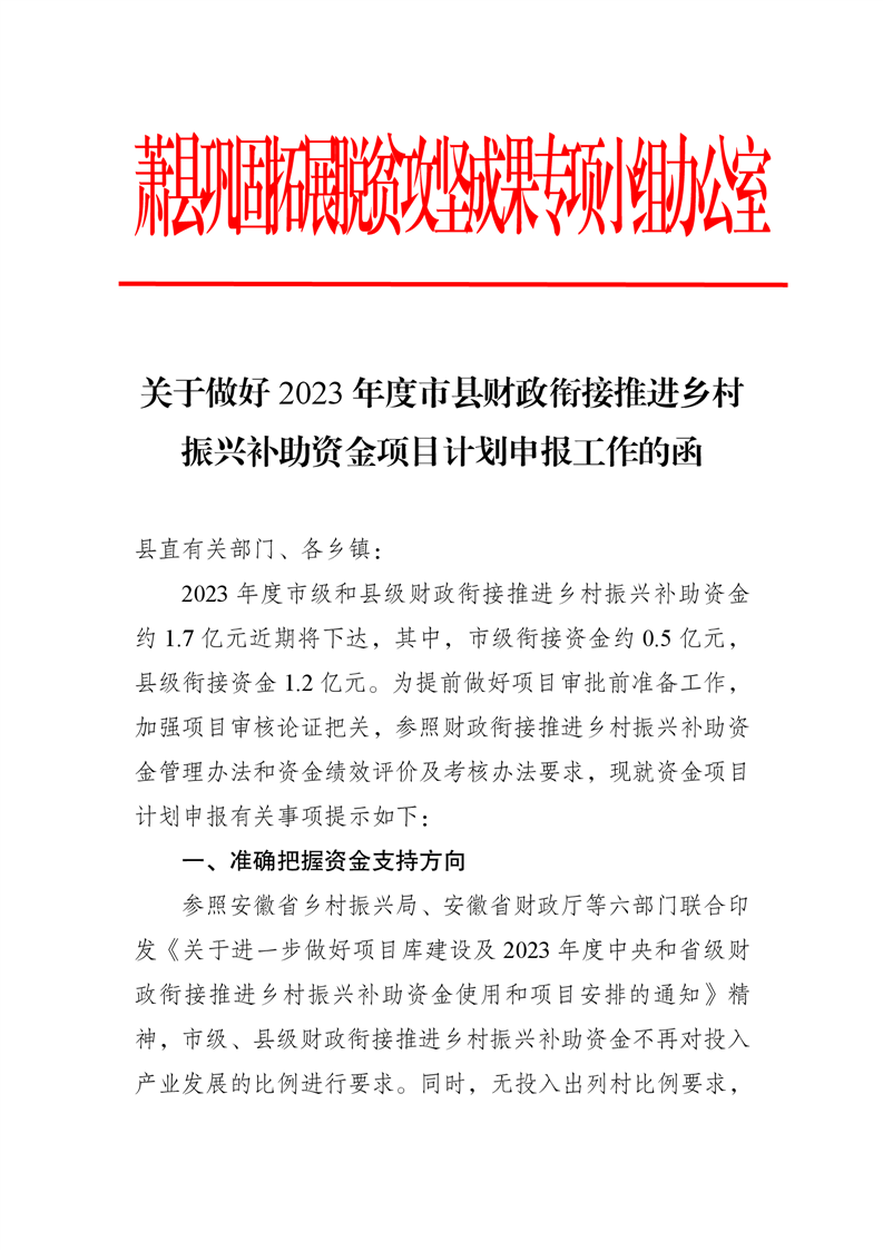 關(guān)于開展2023年市縣財(cái)政銜接推進(jìn)鄉(xiāng)村振興補(bǔ)助資金項(xiàng)目計(jì)劃申報(bào)工作的函