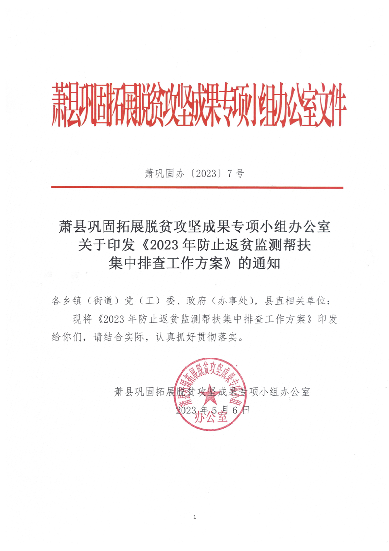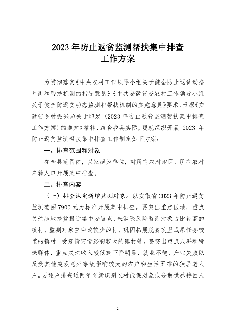 蕭縣2023年防止返貧監(jiān)測幫扶集中排查工作方案