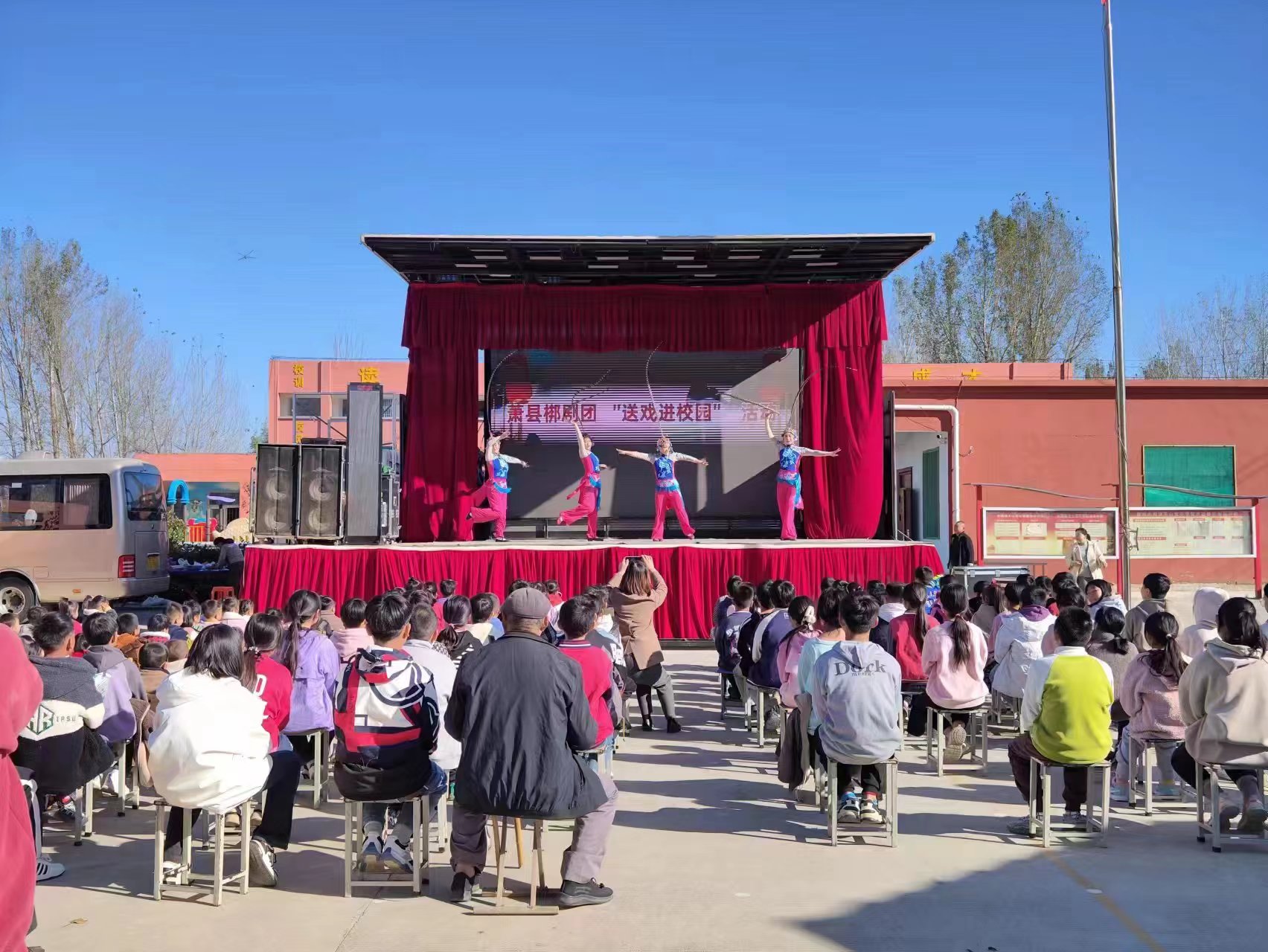 蕭縣梆劇團來到我鎮(zhèn)王山窩小學給全校師生表演了精彩的戲曲節(jié)目,全校師生感受了傳統(tǒng)文藝的魅力。