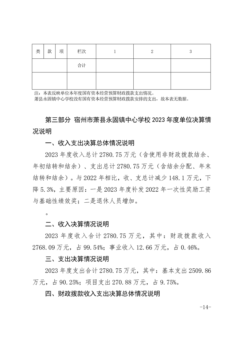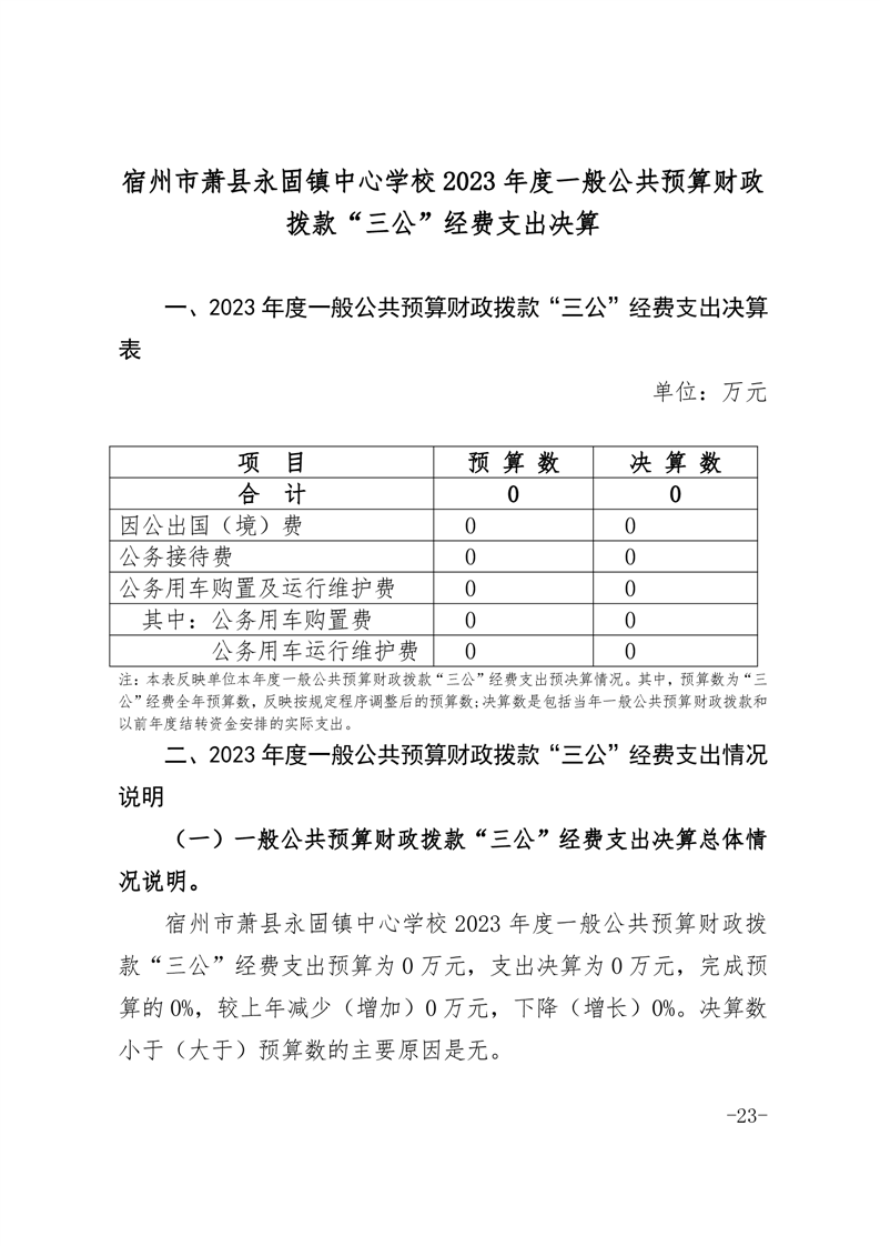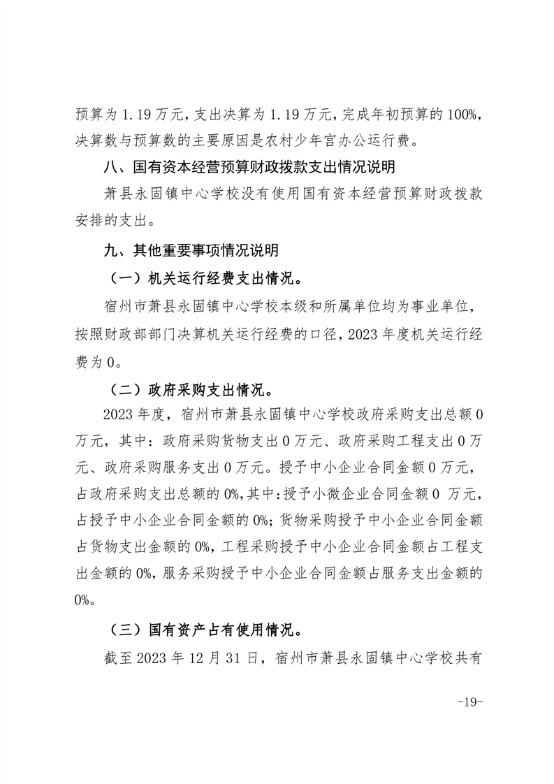 【年度決算】蕭縣永固鎮(zhèn)中心學校2023年度單位決算公開