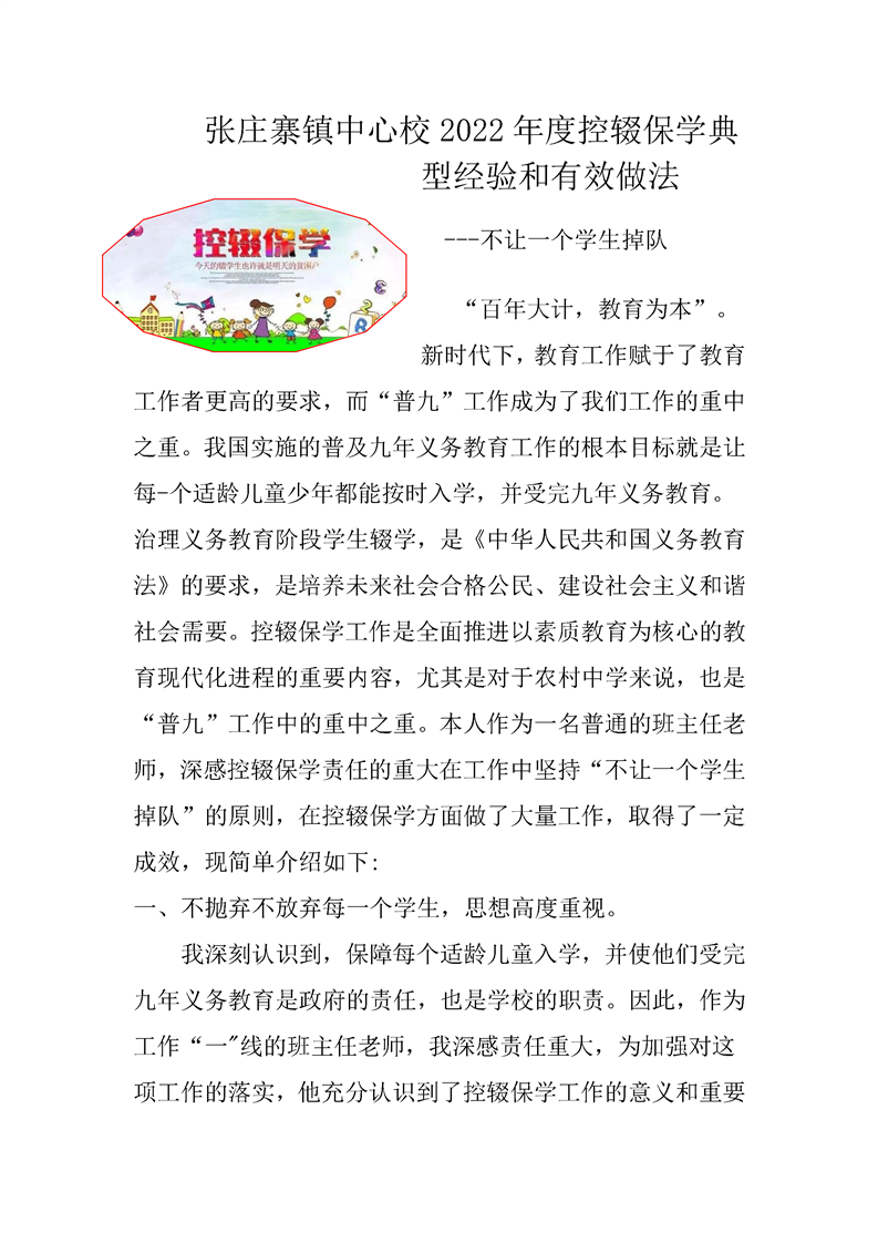 【典型經(jīng)驗和有效做法】張莊寨鎮(zhèn)中心校2022年度“控輟保學(xué)”典型經(jīng)驗和有效做法