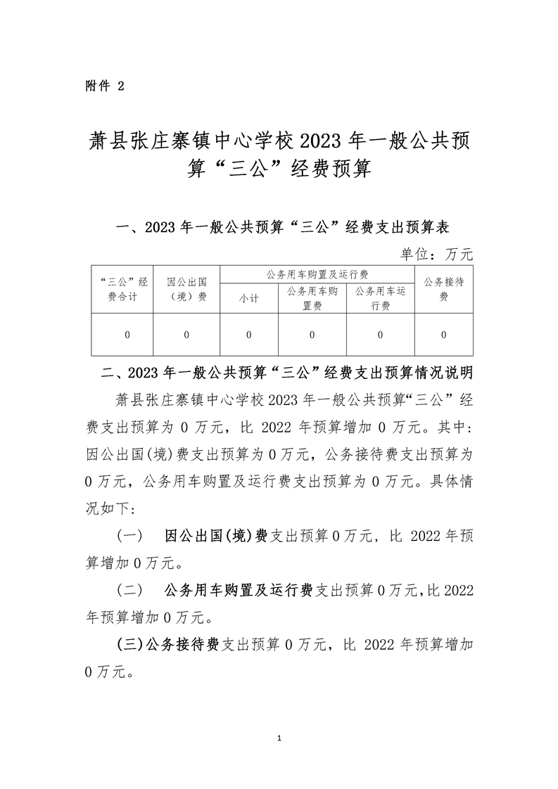 【年度預(yù)算信息】蕭縣張莊寨鎮(zhèn)中心學(xué)校2023年一般公共預(yù)算“三公”經(jīng)費(fèi)預(yù)算