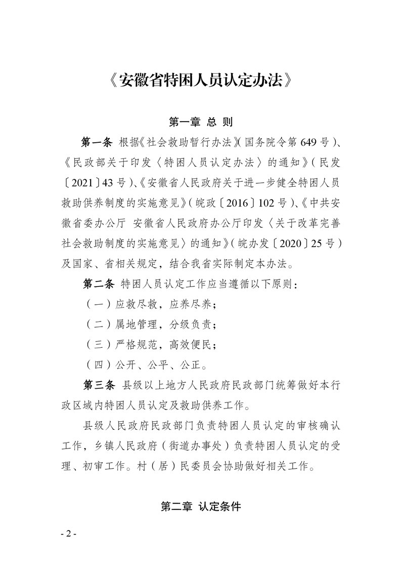 關(guān)于印發(fā)《安徽省特困人員認(rèn)定辦法》的通知(皖民社救字〔2021〕74號)