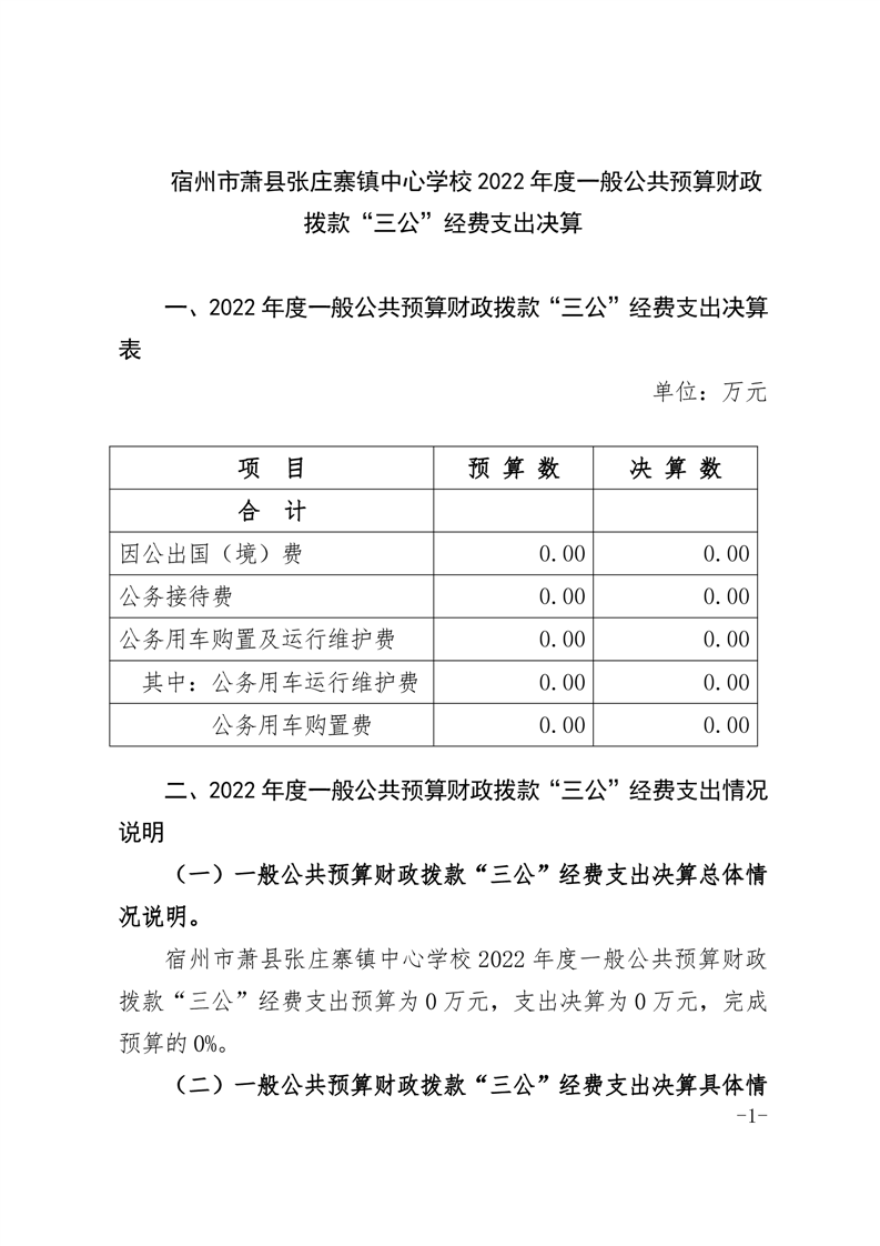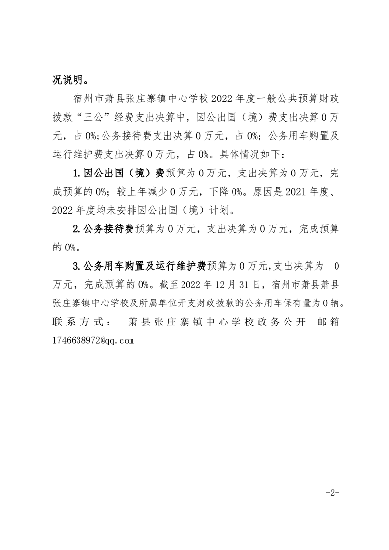 【年度決算信息】蕭縣張莊寨鎮(zhèn)中心學(xué)校2022年度一般公共預(yù)算財(cái)政撥款“三公”經(jīng)費(fèi)支出決算