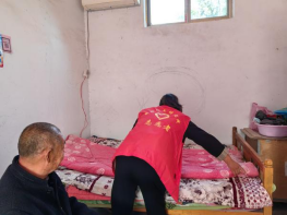 志愿者為老人整理房間、幫助老人和在外務(wù)工子女視頻聊天
