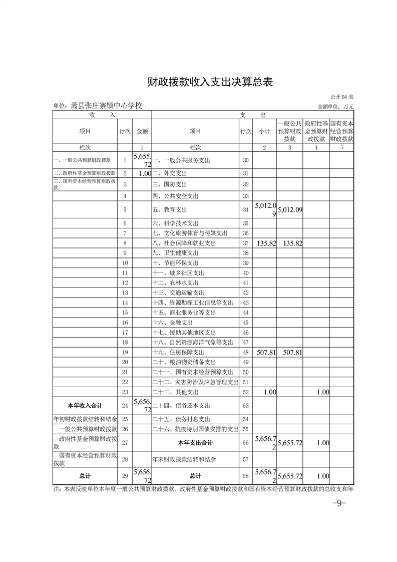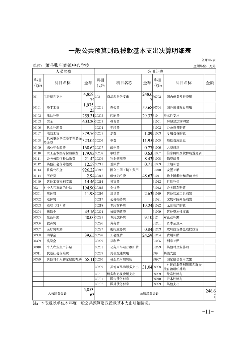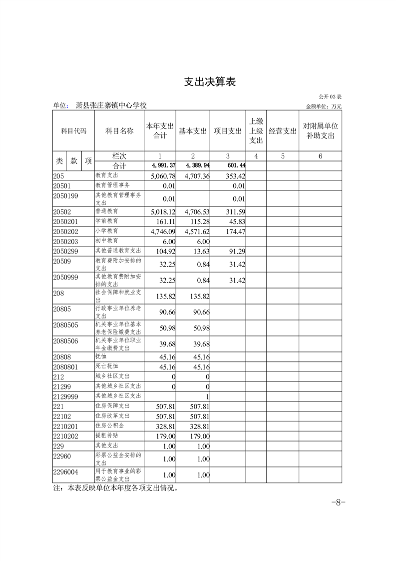 【年度決算信息】蕭縣張莊寨鎮(zhèn)中心學(xué)校2023年度單位決算
