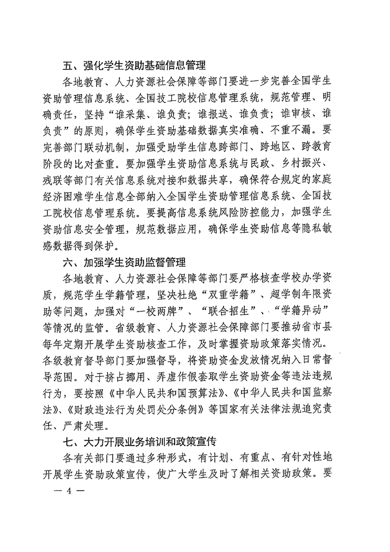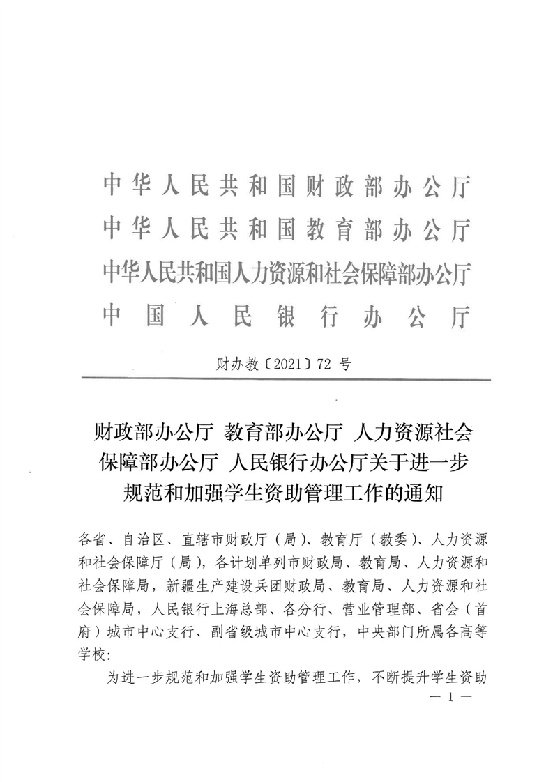 財政部辦公廳教育部辦公廳人力資源社會保障部辦公廳人民銀行辦公廳關(guān)于進一步規(guī)范和加強學(xué)生資助管理工作的通知