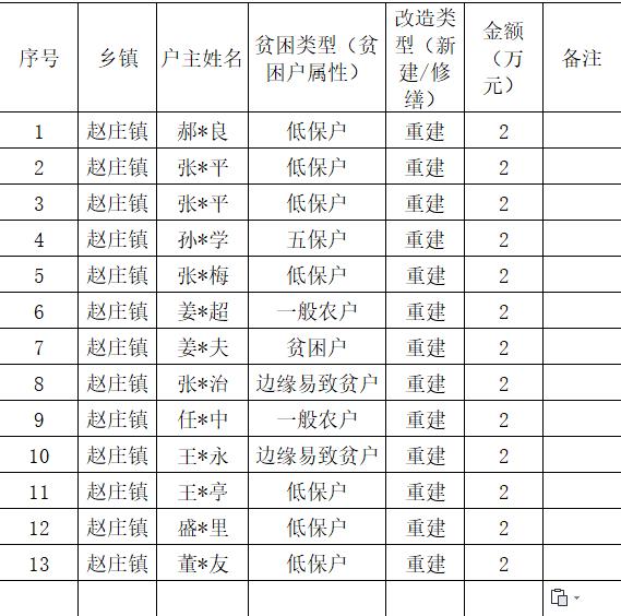 趙莊鎮(zhèn)2022年危房改造結果認定名單