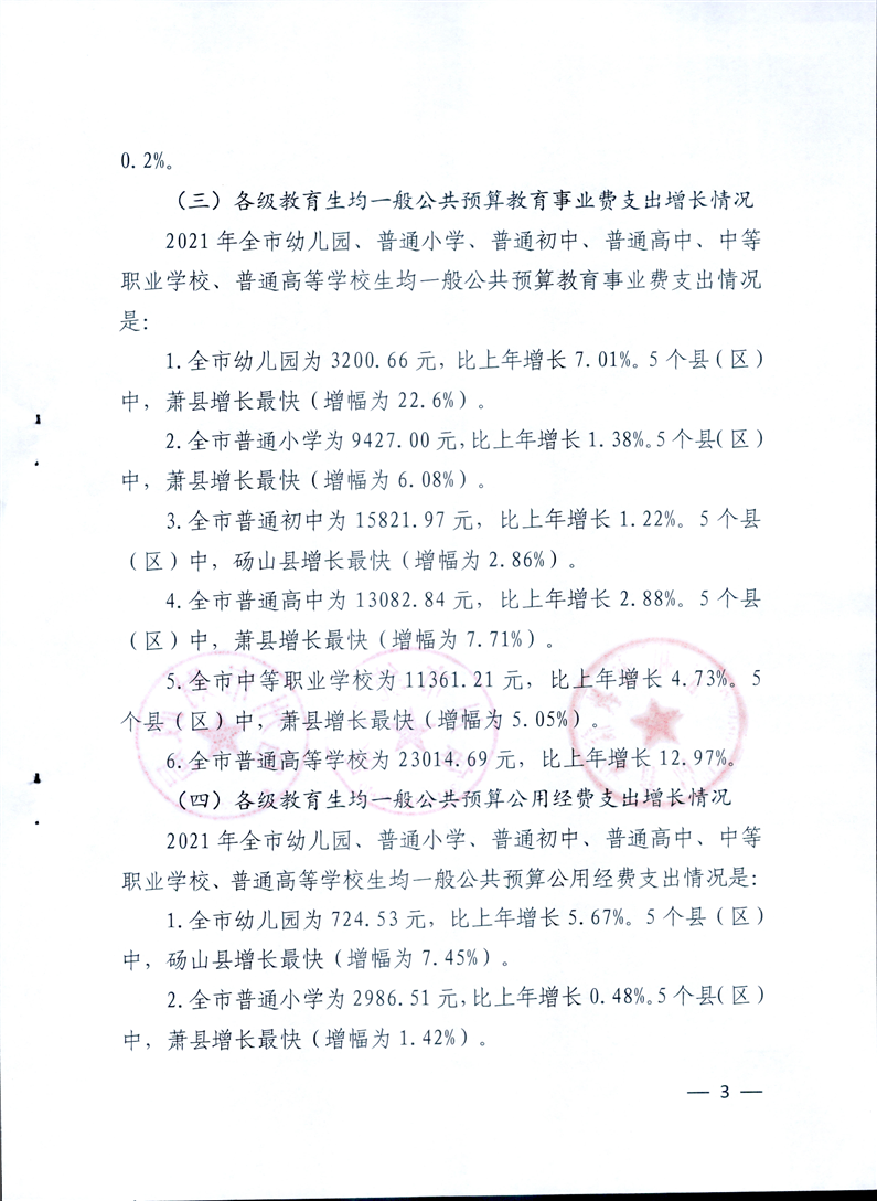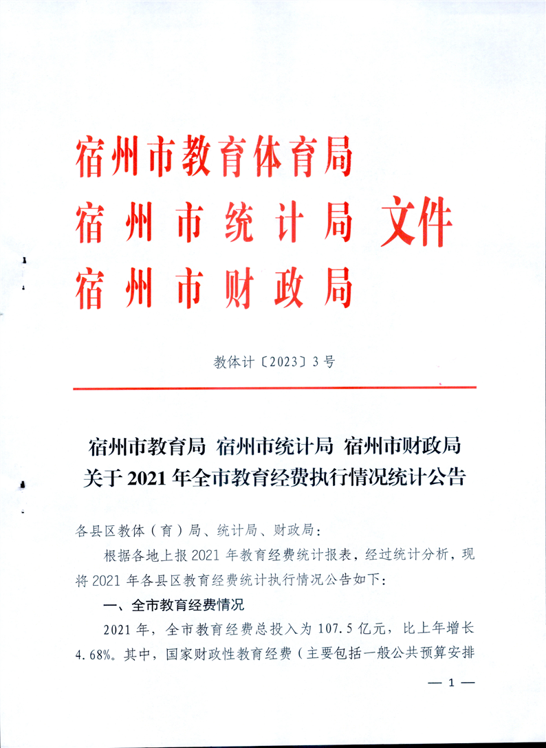 宿州市教育局宿州市統(tǒng)計(jì)局宿州市財(cái)政局關(guān)于2021年全市教育經(jīng)費(fèi)執(zhí)行情況統(tǒng)計(jì)公告