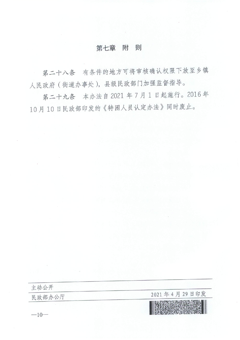 民政部關(guān)于印發(fā)《特困人員認(rèn)定辦法》的通知(民發(fā)〔2021〕43號(hào))