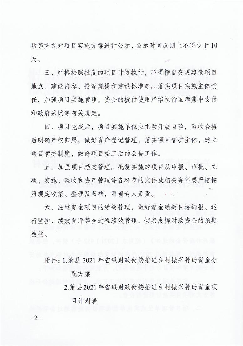 關(guān)于蕭縣2021年省級(jí)財(cái)政銜接推進(jìn)鄉(xiāng)村振興補(bǔ)助資金項(xiàng)目計(jì)劃的批復(fù)