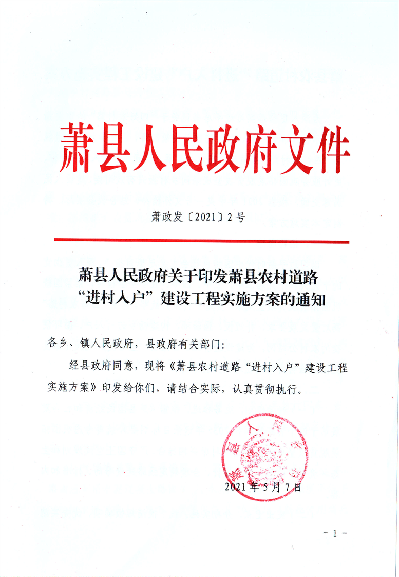 蕭縣農(nóng)村道路“進(jìn)村入戶”建設(shè)工程實(shí)施方案