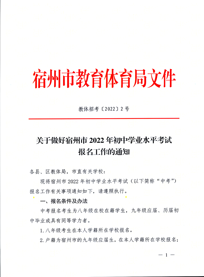 關(guān)于做好宿州市2022年初中學(xué)業(yè)水平考試報(bào)名工作的通知