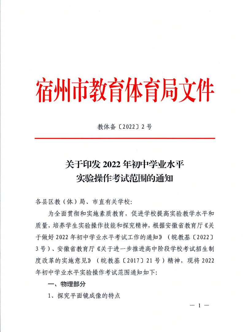 關(guān)于印發(fā)2022年初中學(xué)業(yè)水平實(shí)驗(yàn)操作考試范圍的通知