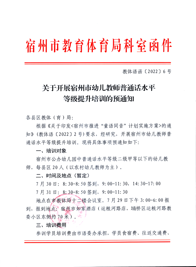 【普通話培訓(xùn)】關(guān)于開展宿州市幼兒教師普通話水平等級提升培訓(xùn)的預(yù)通知