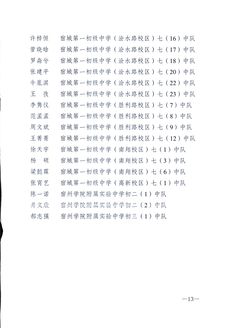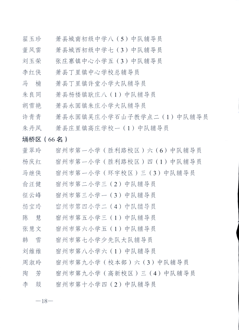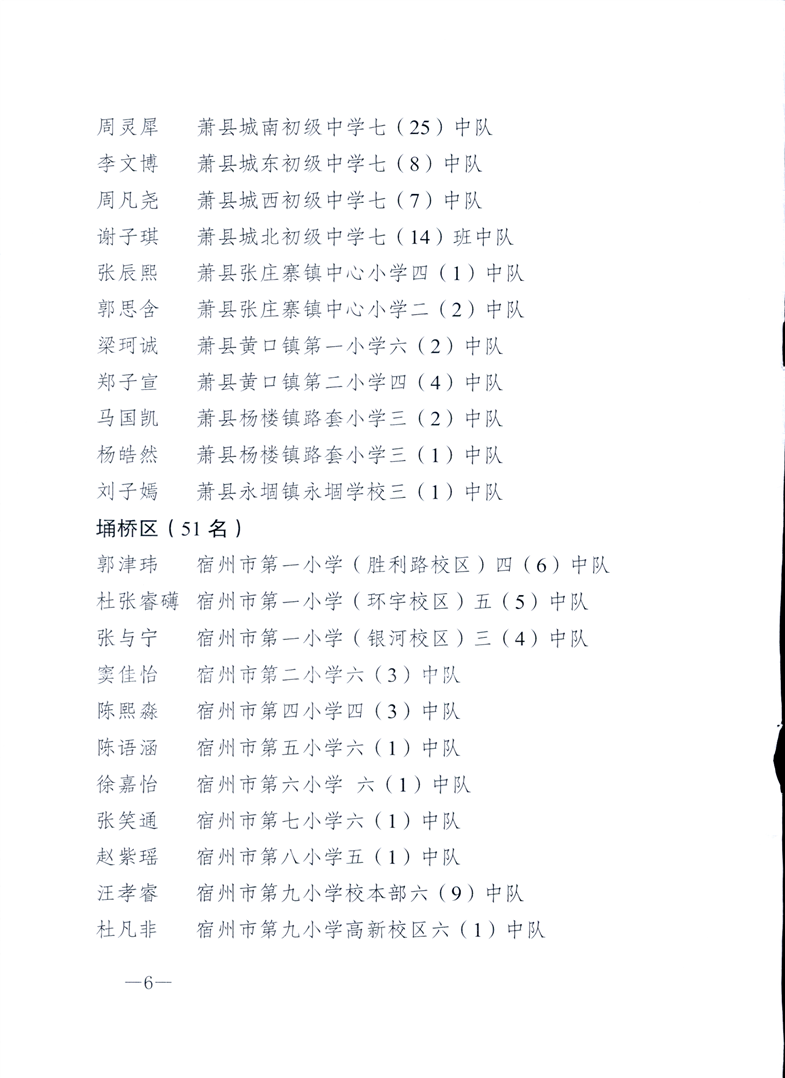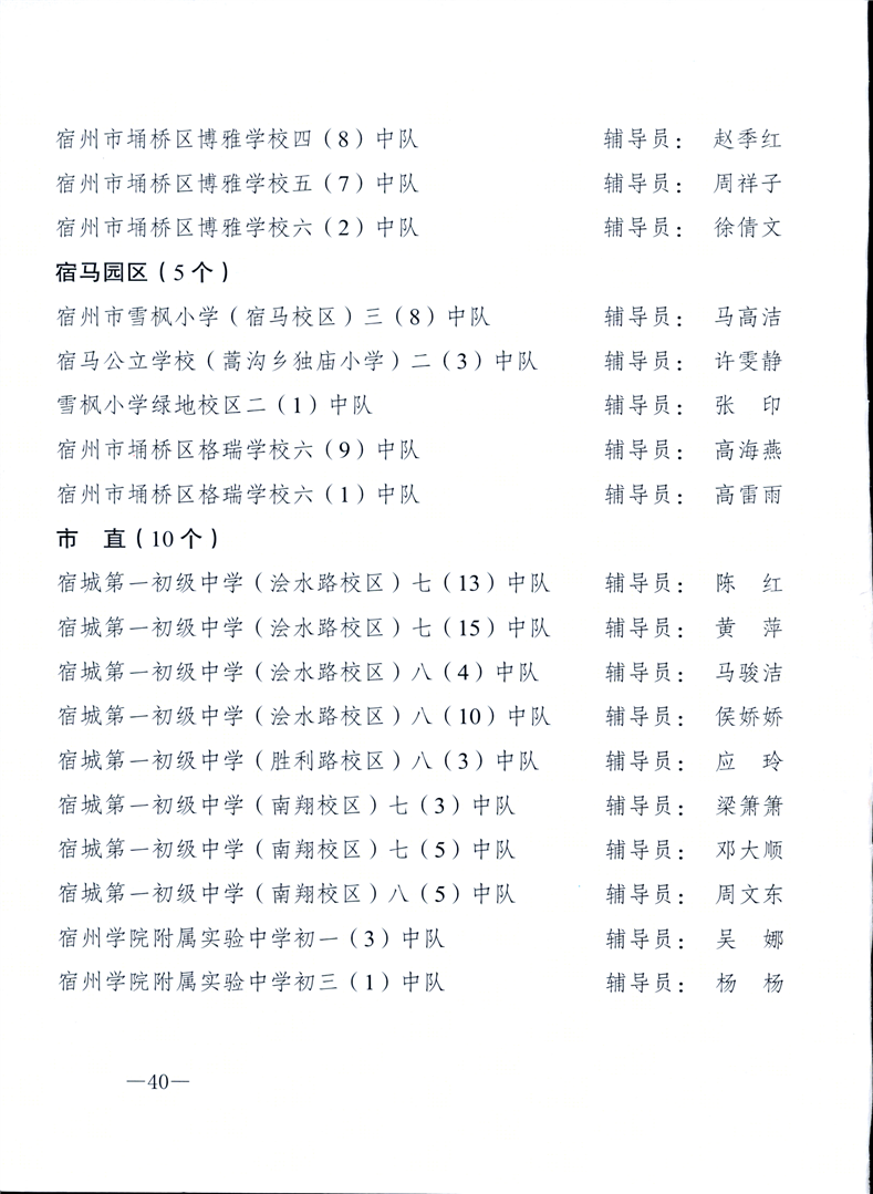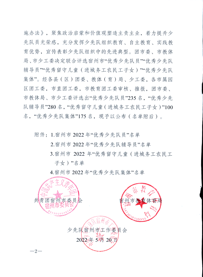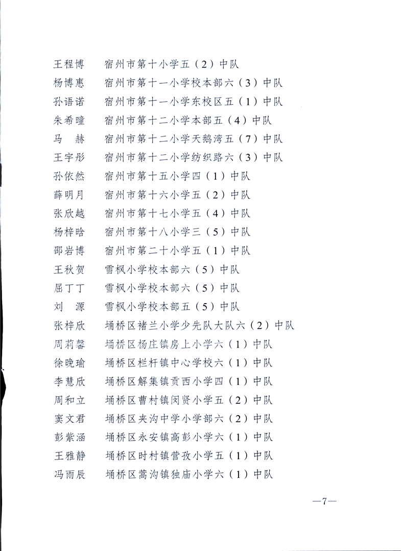 關于公布宿州市“優(yōu)秀少先隊員”“優(yōu)秀少先隊輔導員”“優(yōu)秀留守兒童(進城務工農民工子女)”和“優(yōu)秀少先隊集體”名單的通知