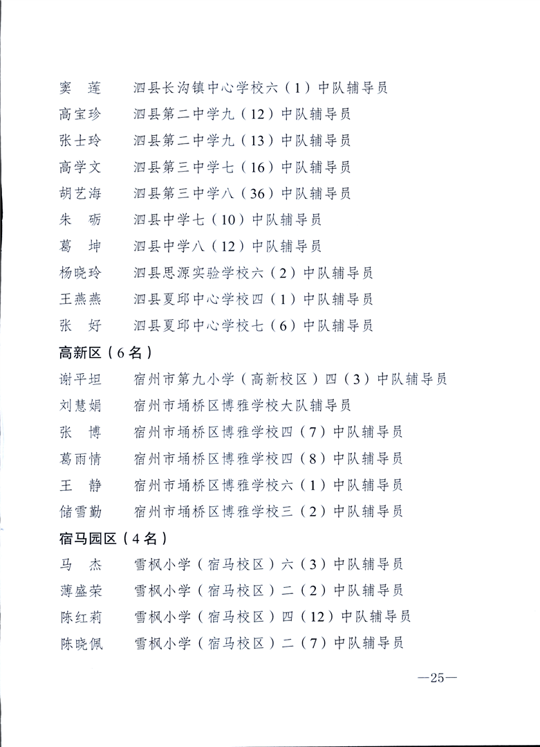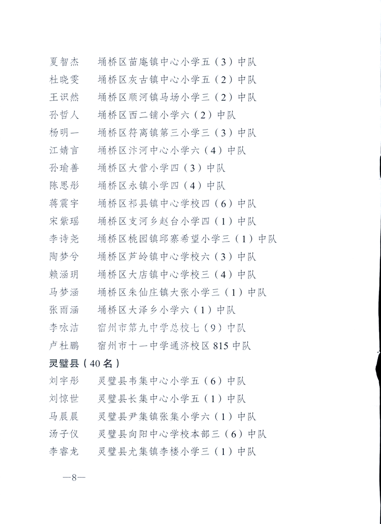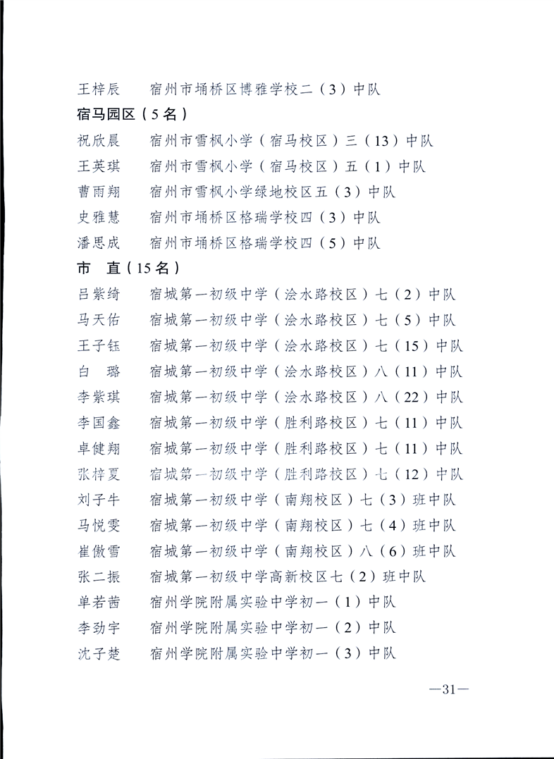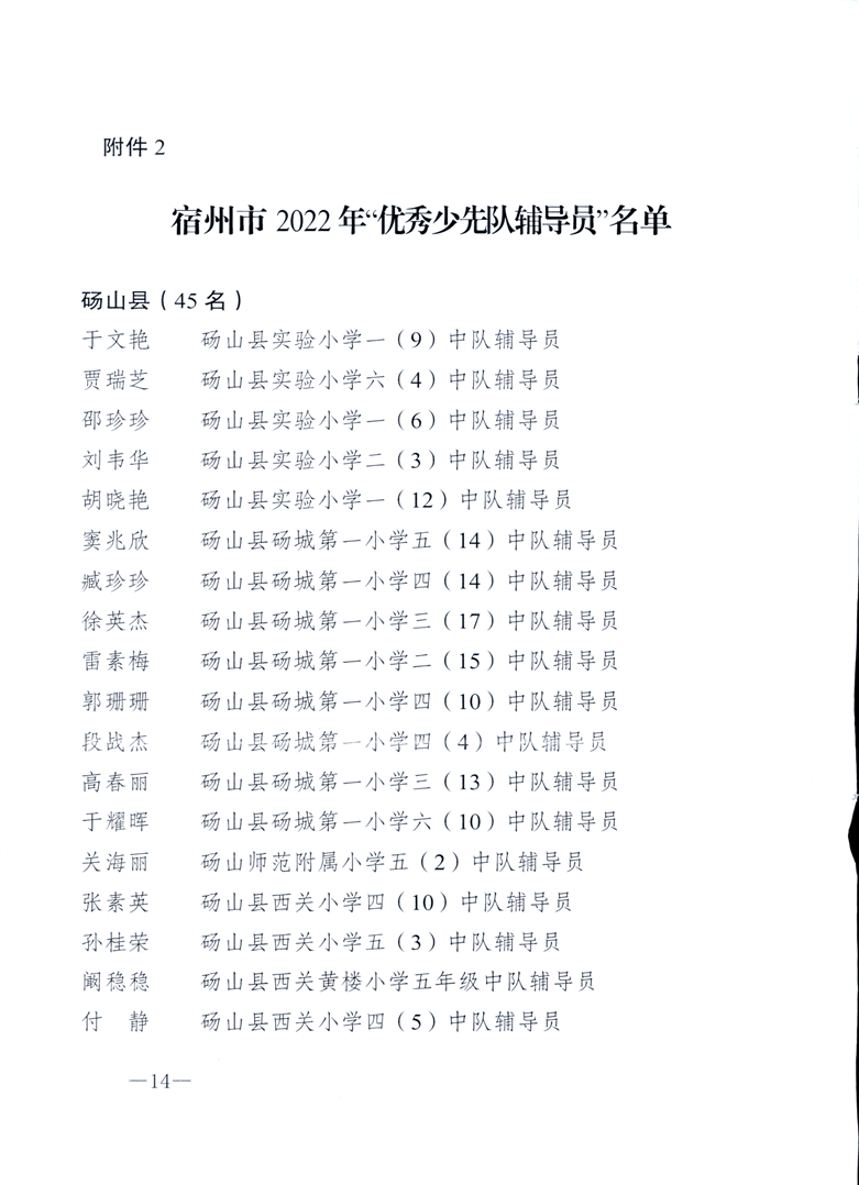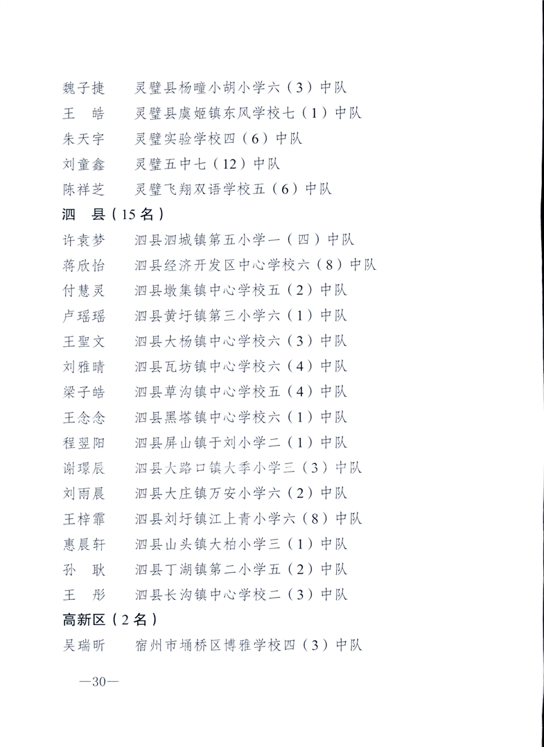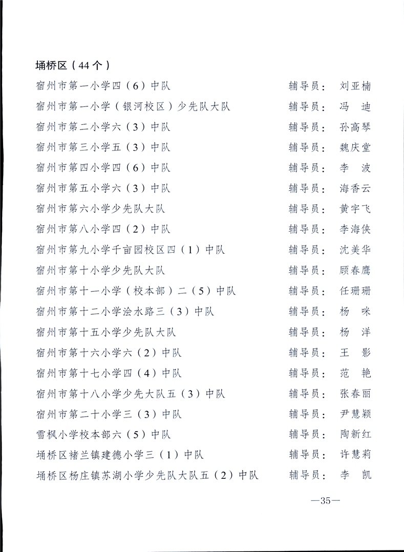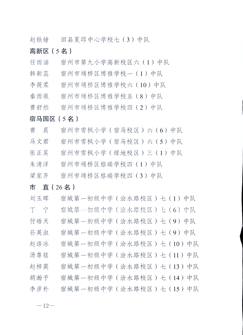 關于公布宿州市“優(yōu)秀少先隊員”“優(yōu)秀少先隊輔導員”“優(yōu)秀留守兒童(進城務工農民工子女)”和“優(yōu)秀少先隊集體”名單的通知