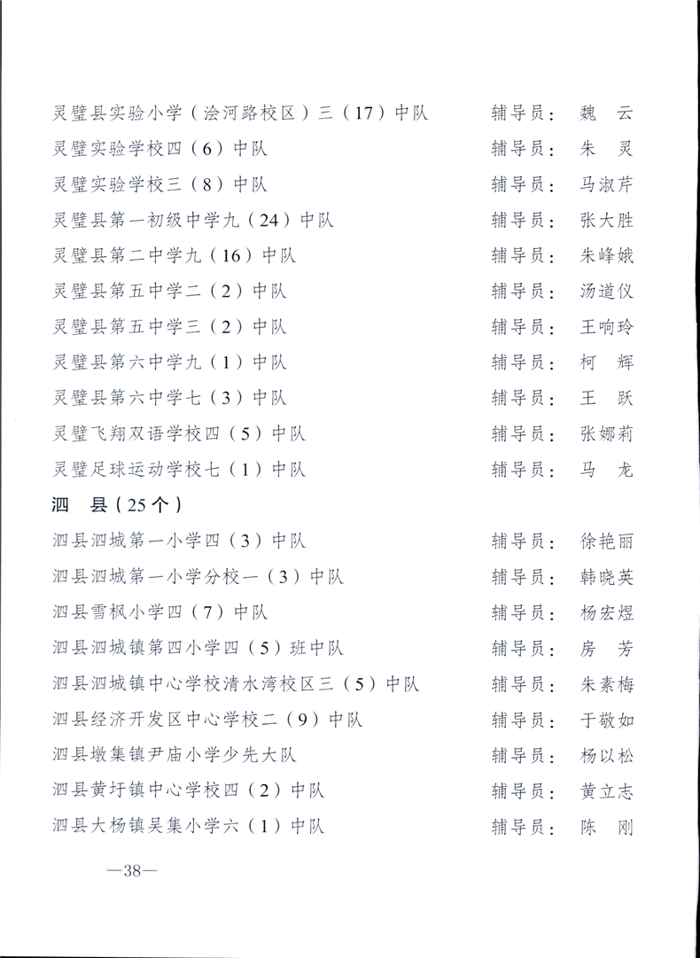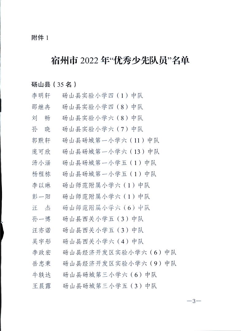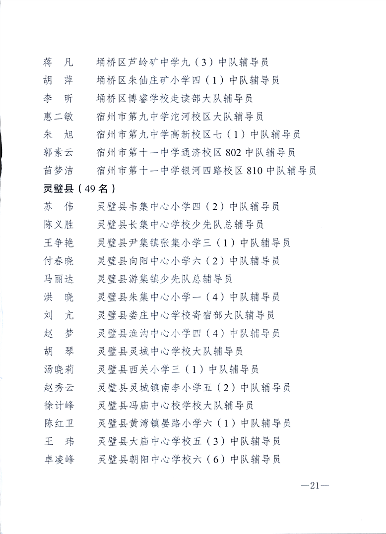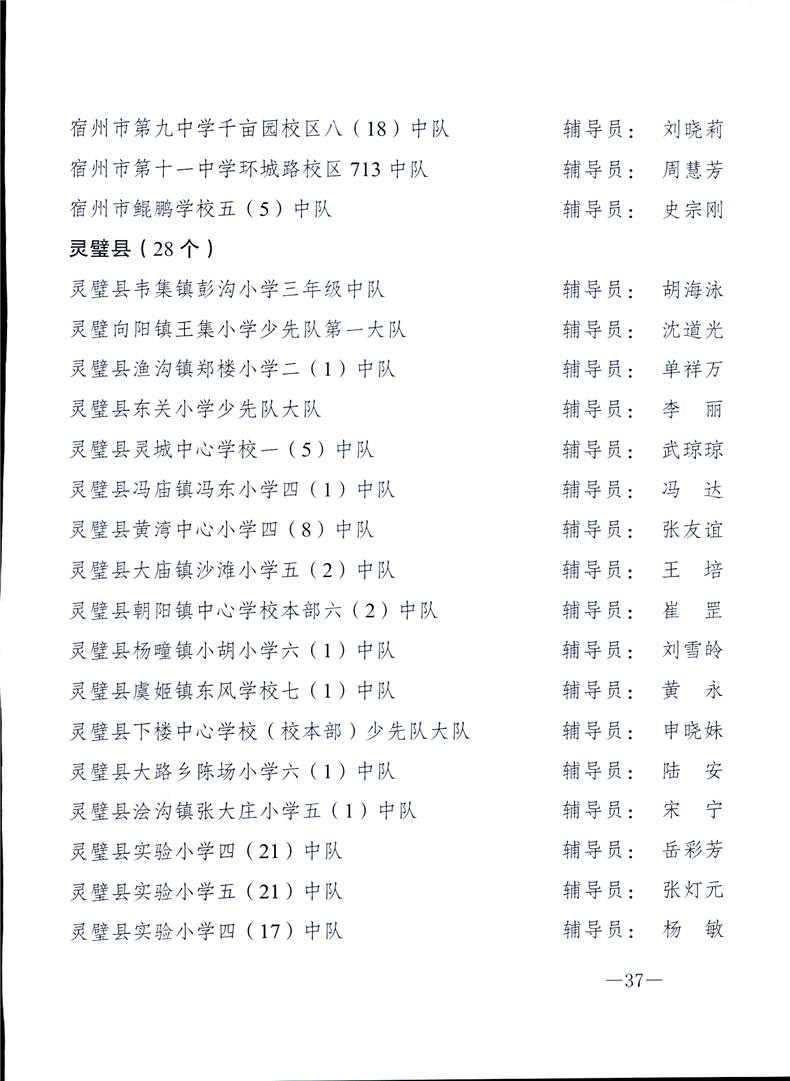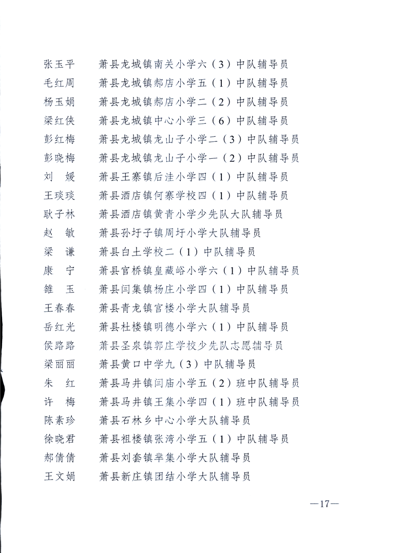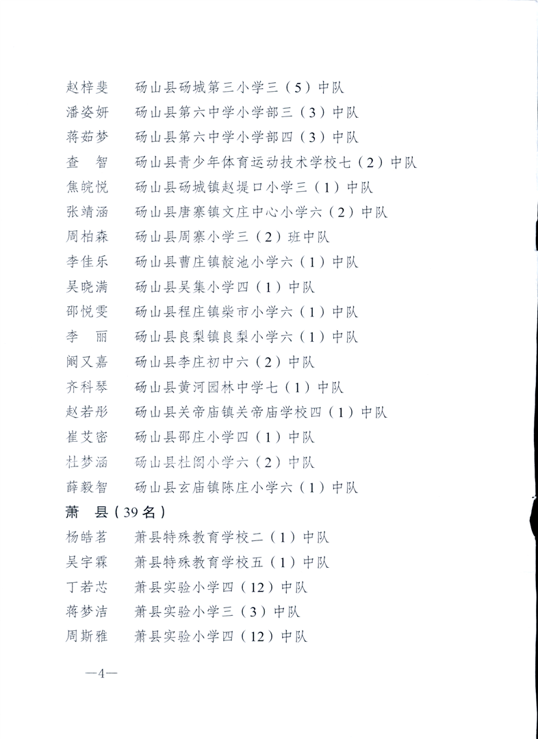 關于公布宿州市“優(yōu)秀少先隊員”“優(yōu)秀少先隊輔導員”“優(yōu)秀留守兒童(進城務工農民工子女)”和“優(yōu)秀少先隊集體”名單的通知