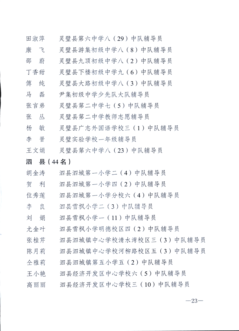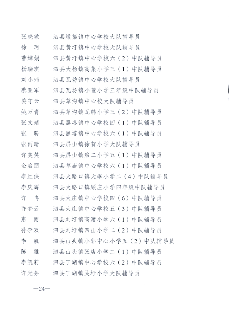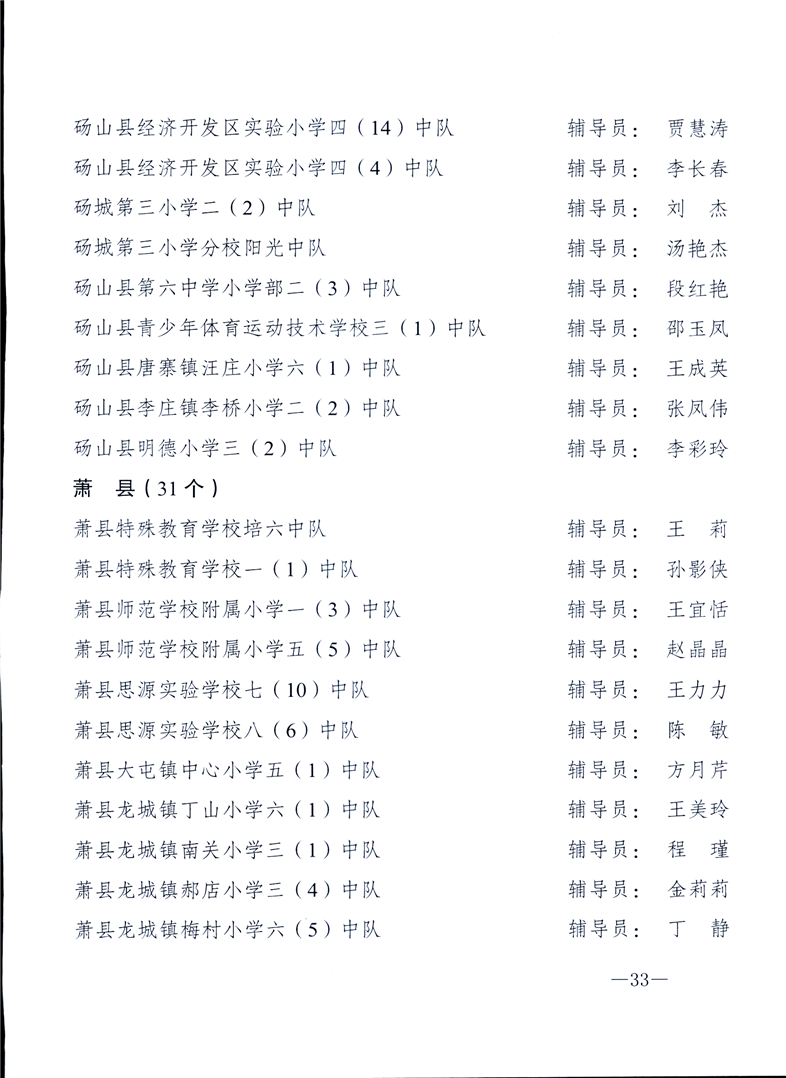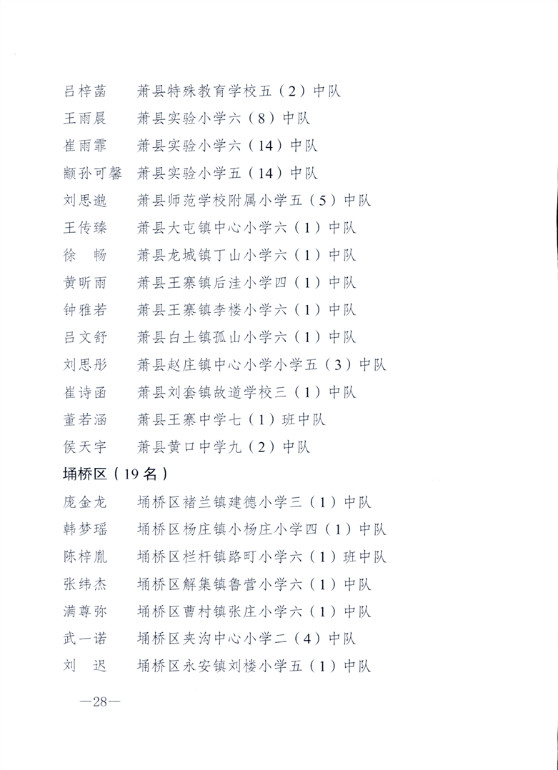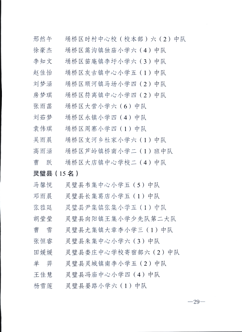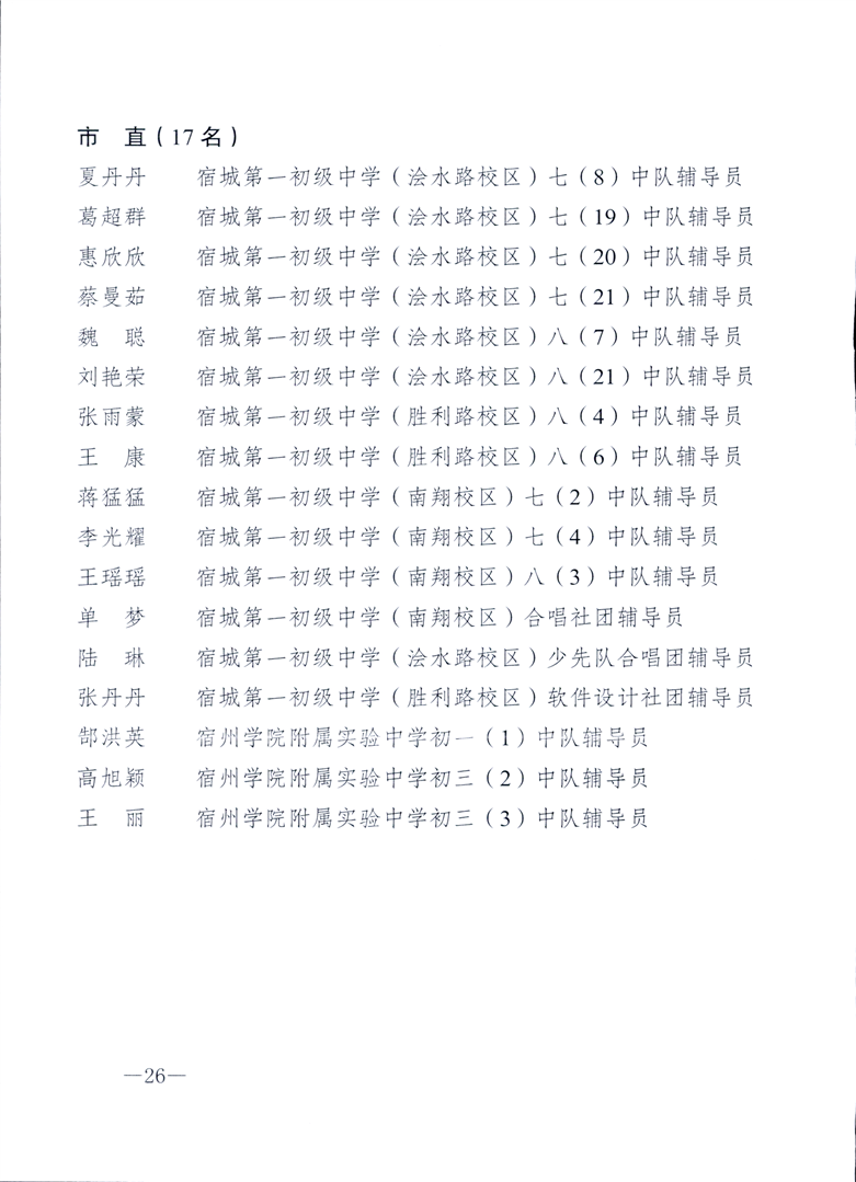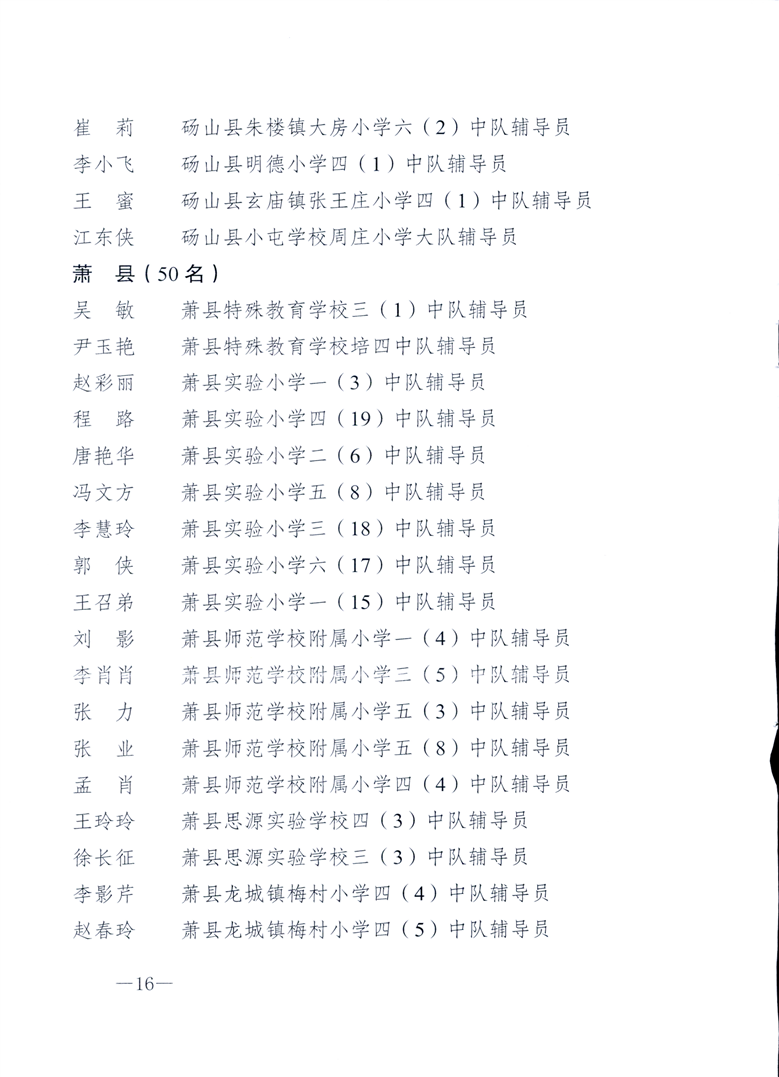 關于公布宿州市“優(yōu)秀少先隊員”“優(yōu)秀少先隊輔導員”“優(yōu)秀留守兒童(進城務工農民工子女)”和“優(yōu)秀少先隊集體”名單的通知
