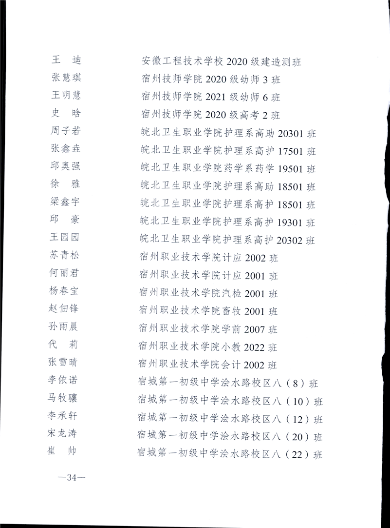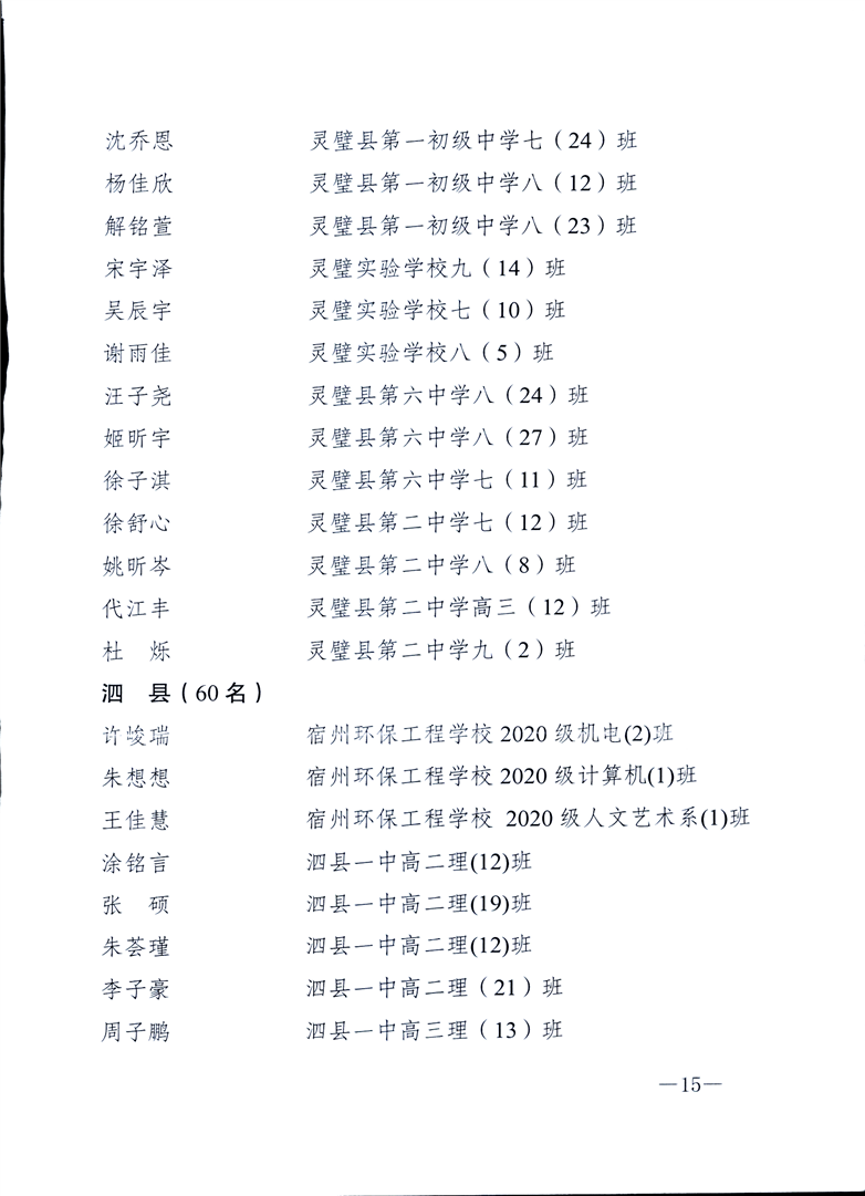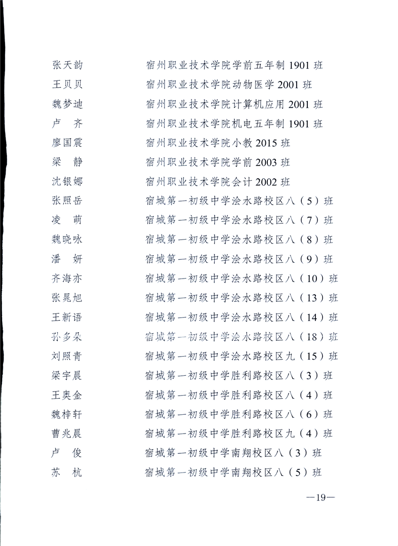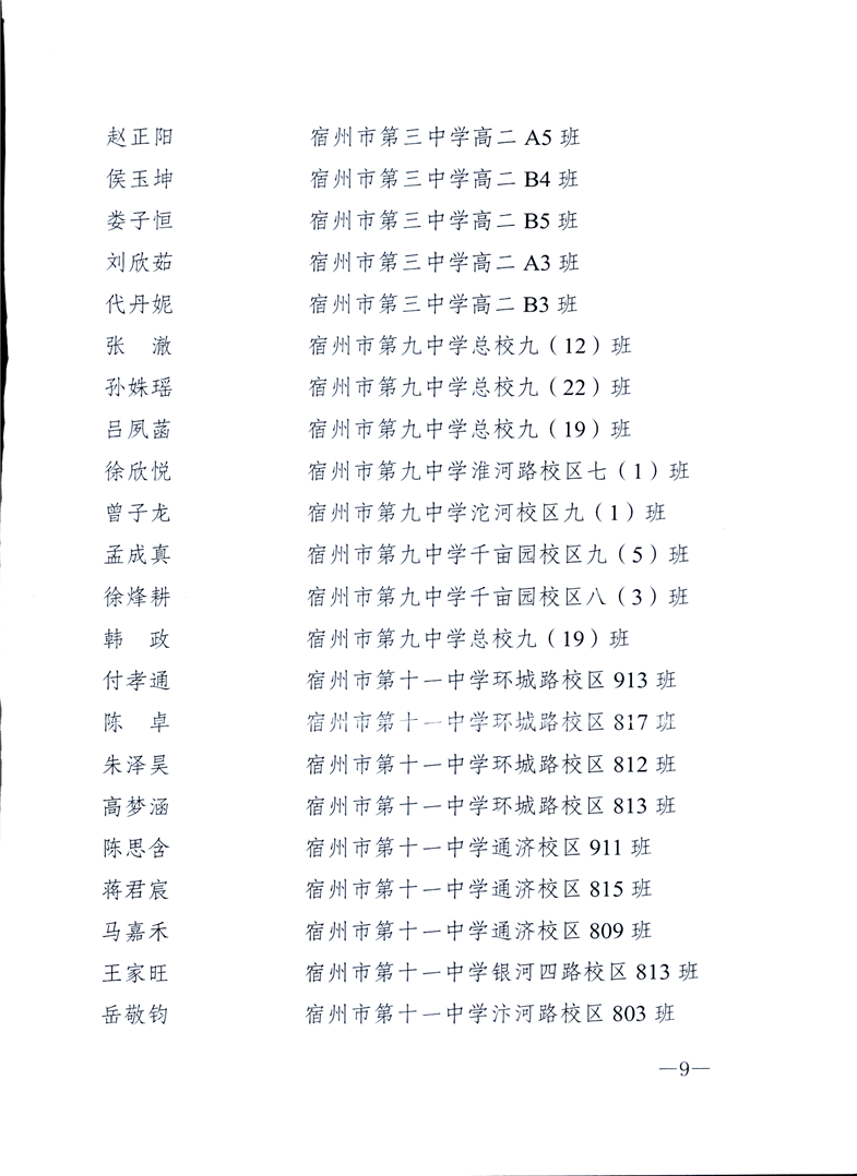 關(guān)于公布2021-2022學(xué)年度“宿州市三好學(xué)生”“宿州市優(yōu)秀學(xué)生干部”和“宿州市先進班集體”名單的通知