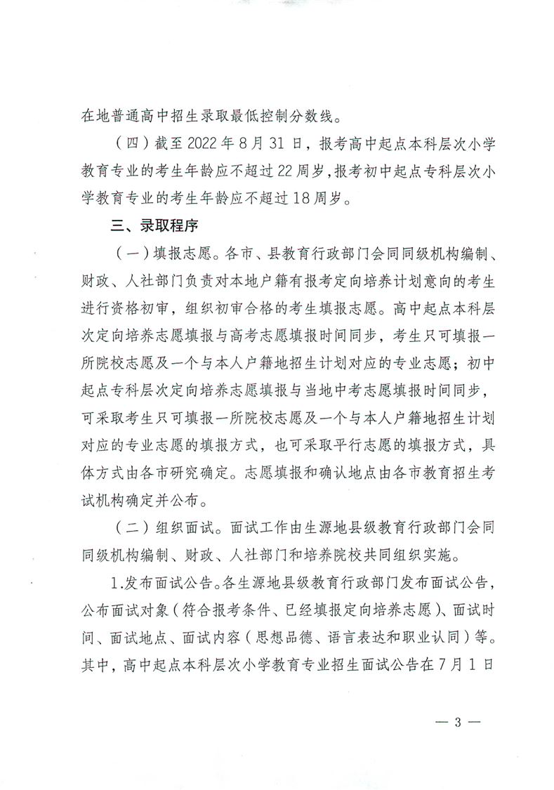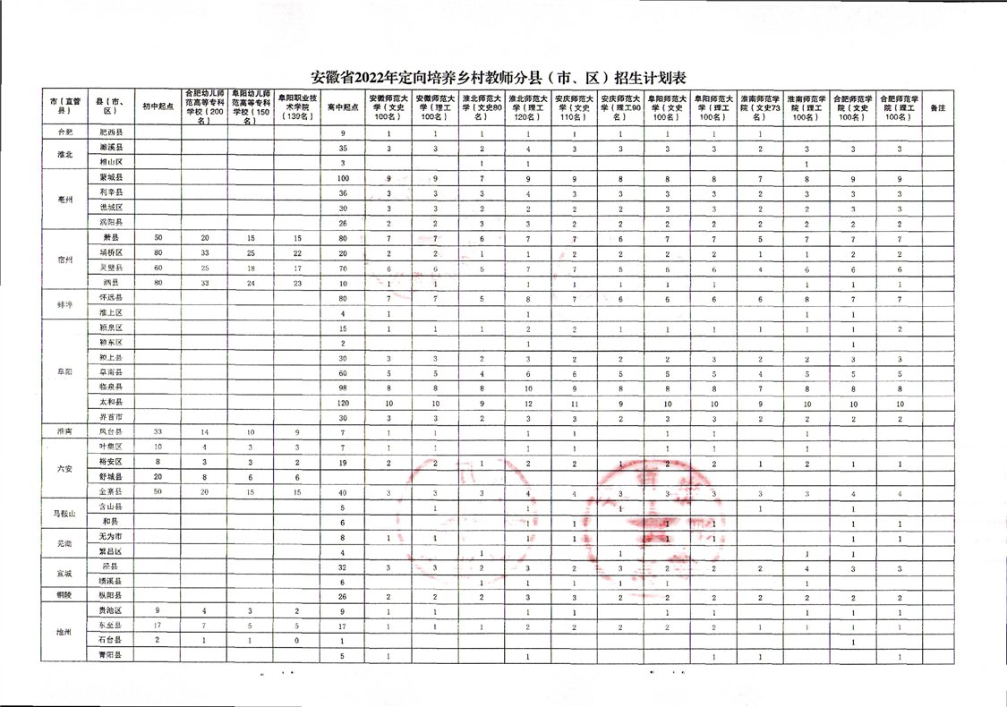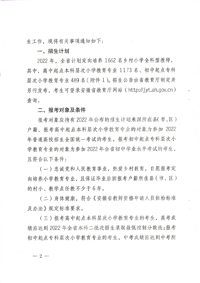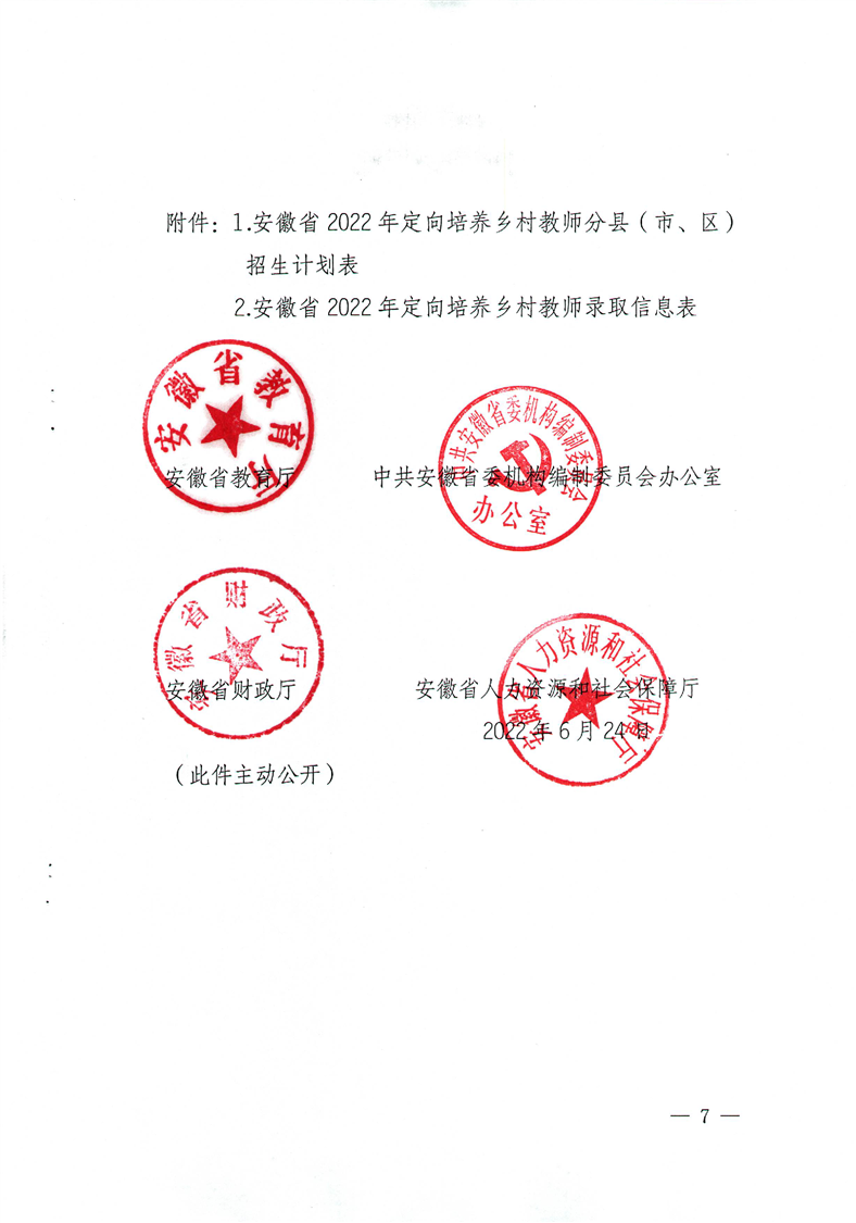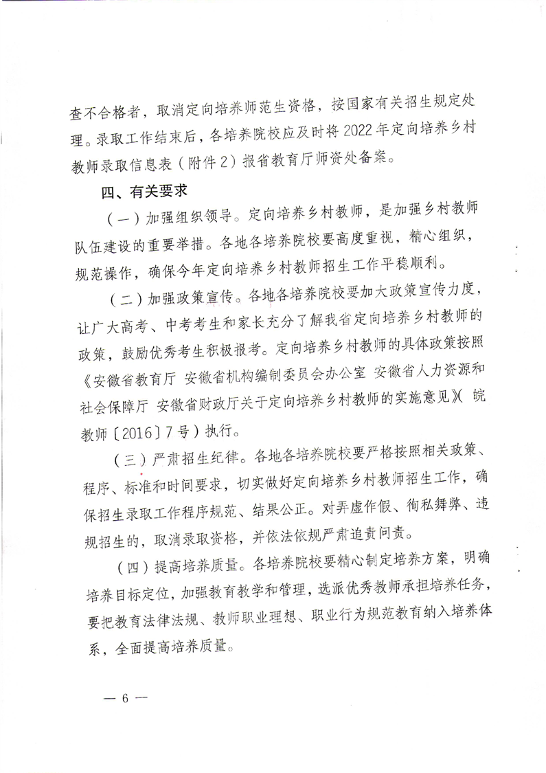 安徽省教育廳中共安徽省委機構(gòu)編制委員會辦公室安徽省財政廳安徽省人力資源和社會保障廳關(guān)于做好2022年定向培養(yǎng)鄉(xiāng)村教師招生工作的通知