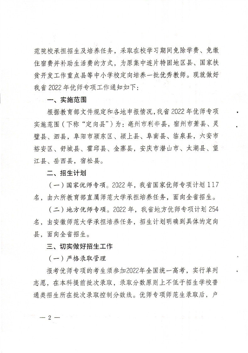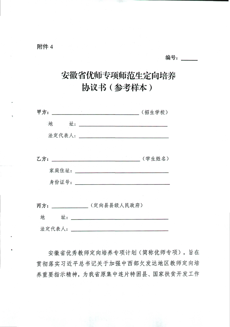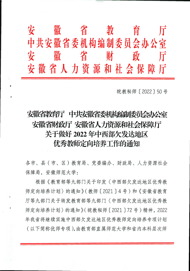 安徽省教育廳中共安徽省委機(jī)構(gòu)編制委員會(huì)辦公室安徽省財(cái)政廳安徽省人力資源和社會(huì)保障廳關(guān)于做好2022年中西部欠發(fā)達(dá)地區(qū)優(yōu)秀教師定向培養(yǎng)工作的通知