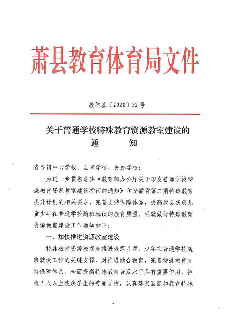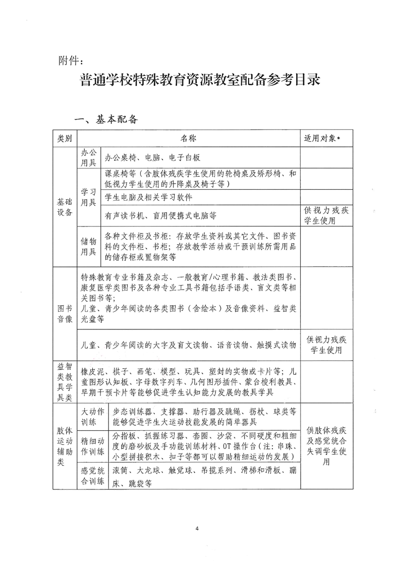 關(guān)于普通學(xué)校特殊教育資源教室建設(shè)的通知